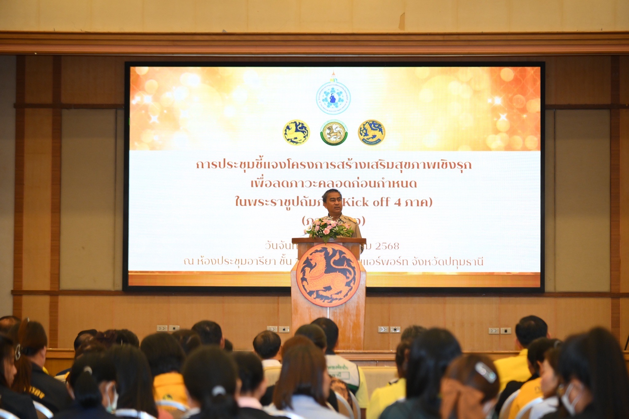 วันที่ 14 ก.ค. 68 เวลา 09.00 น. นางสาวอโรชา นันทมนตรี ผู้ว่าราชการจังหวัดนครปฐม  พร้อมด้วย นายปรีชา ดิลกพรเมธี รองผู้ว่าราชการจังหวัด และส่วนราชการที่เกี่ยวข้อง เข้าร่วมเปิดงาน Kick Off โครงการสร้างเสริมสุขภาพเชิงรุกเพื่อลดภาวะคลอดก่อนกำหนดในพระราชูปถัมภ์ฯ พื้นที่ภาคกลาง ผ่านระบบออนไลน์ ที่ห้องประชุมวัชรีรมยา ชั้น 3 ศาลากลางจังหวัดนครปฐม