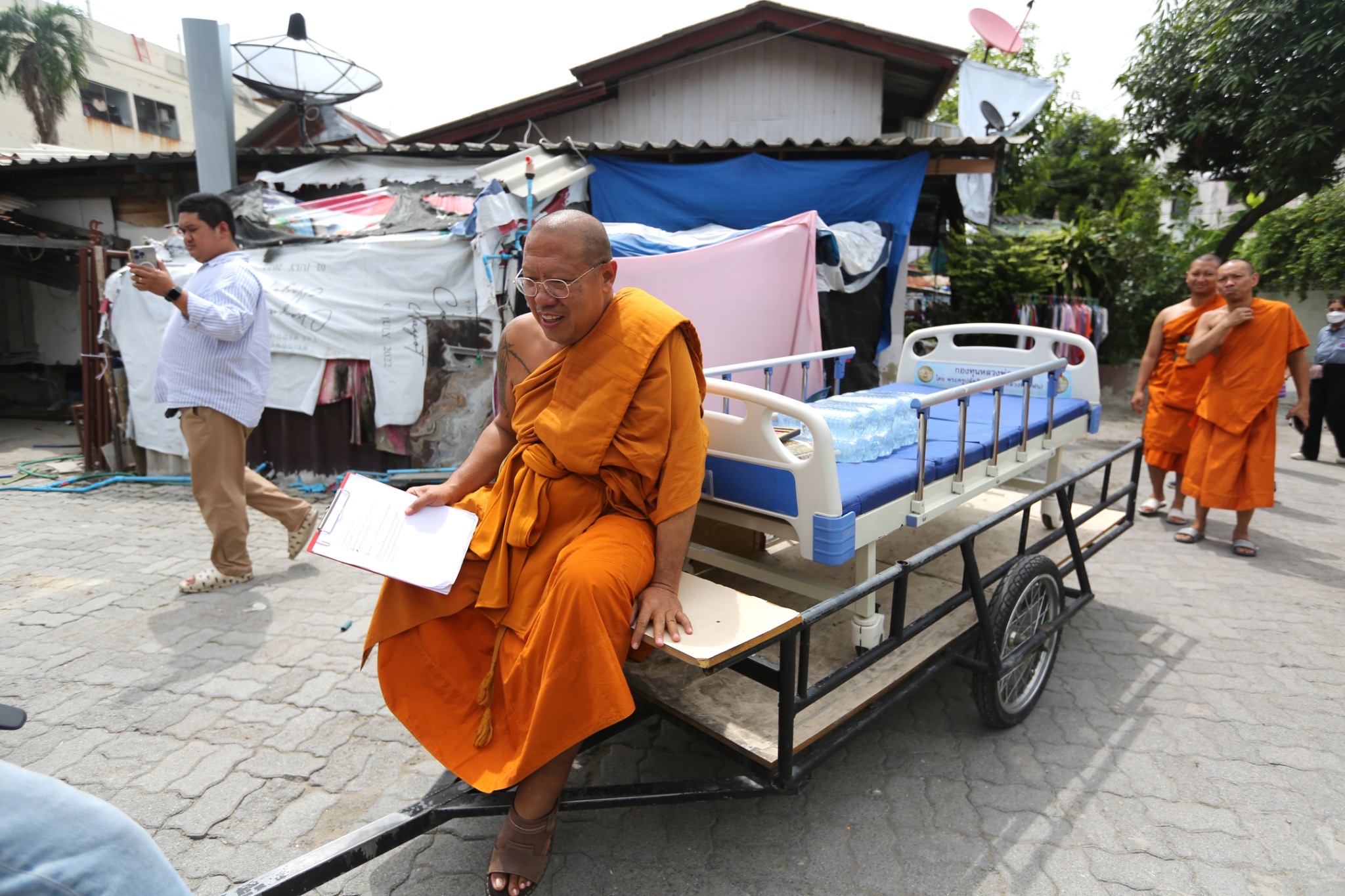 ล่าสุด หลวงพี่น้ำฝน ผู้รักษาการแทนเจ้าอาวาสวัดไผ่ล้อมฯ ได้นำคณะสงฆ์เจ้าหน้าที่ นำเตียงสำหรับผู้ป่วย และเครื่องยังชีพที่จำเป็น บรรทุกใส่รถซาเล้ง นำไปส่งมอบให้กับ นางอมรรัตน์ มั่นคง อายุ56ปี พนักงานลูกจ้างประจำรถเก็บขยะ ของหน่วยงานแห่งหนึ่ง ซึ่งนอนติดเตียงในบ้านญาติภายในชุนชนบ้านมอญบ้านเลขที่ 120/5 ถ.เทศา ต.พระปฐมเจดีย์ อ.เมือง จ.นครปฐม โดยเป็นผู้ป่วยติดเตียง ด้วยอาการกล้ามเนื้ออ่อนแรง ซึ่งนายกฤษดา บุตรชายได้ประสานการขอความช่วยเหลือในการขอรับเตียงสำหรับผู้ป่วย