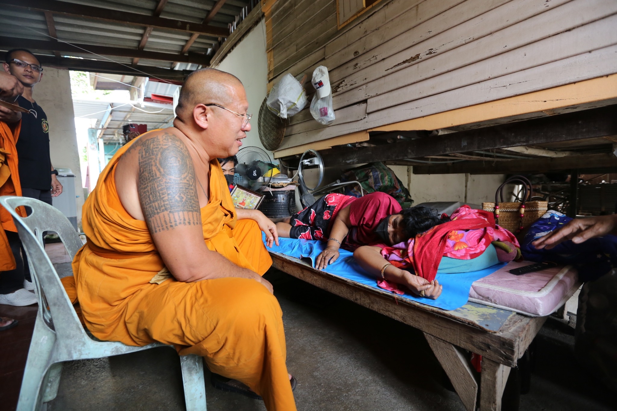 หลวงพี่น้ำฝน ผู้รักษาการแทนเจ้าอาวาสวัดไผ่ล้อมฯ กล่าวว่าหลังจากได้รับการประสานขอความช่วยเหลือมาจากครอบครัวของนางอมรรัตน์ ซึ่งได้มีการตรวจสอบประวัติและข้อมูลทราบว่าครอบครัวนี้มีความผูกพันกับวัดไผ่ล้อมมาตั้งแต่รุ่นของหลวงพ่อพูล อดีตเจ้าอาวาสซึ่งมีความผูกพันกันระหว่างชุมชนและวัดจึงทราบข้อมูลและรีบเดินทางโดยการนำรถซาเล้งบรรทุกเตียงและเครื่องใช้ที่จำเป็นมามอบให้โดยถือเป็นพื้นที่ที่ไม่ไกลและทางเข้ามีความคับแคบการ เดินทางมาจึงใช้วิธีการให้เหมาะสมกับพื้นที่และได้ให้กำลังใจรวมถึงมอบปัจจัยช่วยเหลือกับครอบครัวของนางอมรรัตน์ ทันที