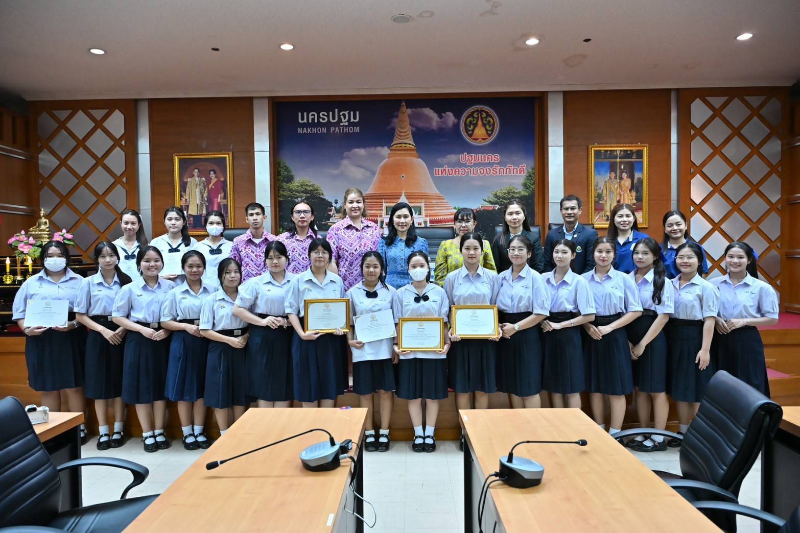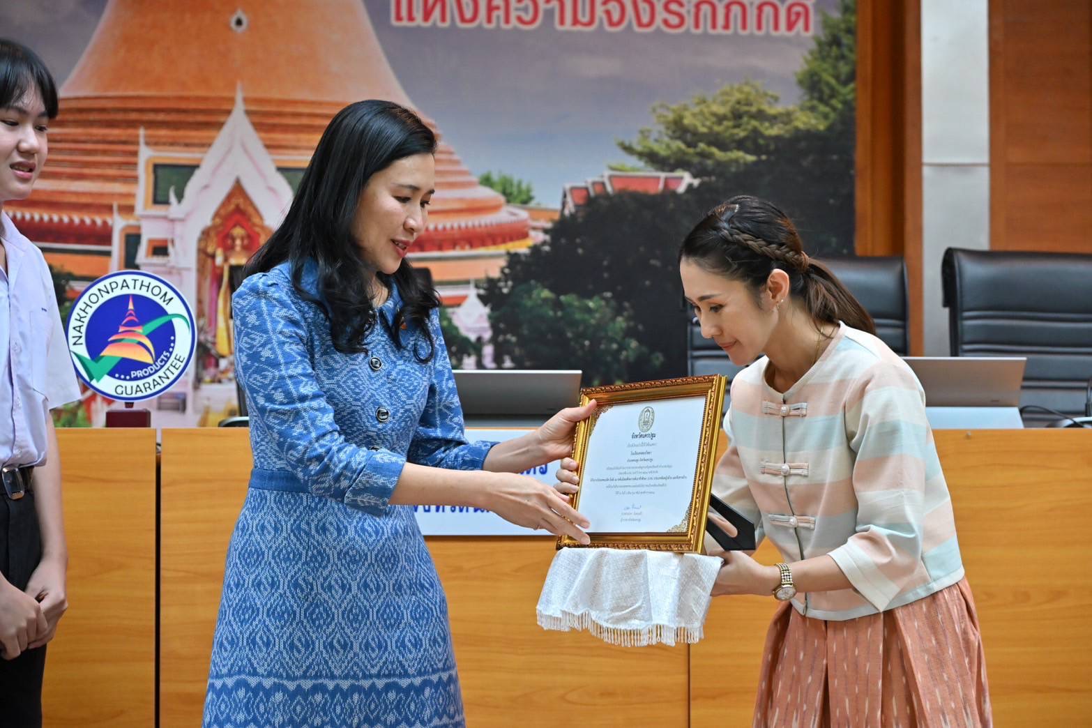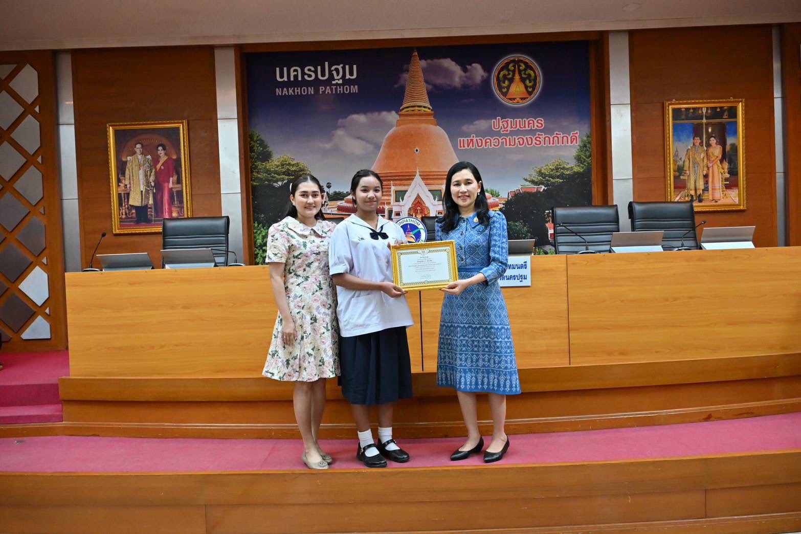 เมื่อวันที่ 18 กรกฎาคม 2568 เวลา 09.00 น. ที่ห้องพิมานปฐม ชั้น 5 ศาลากลางจังหวัดนครปฐม จังหวัดนครปฐม โดยสำนักงานวัฒนธรรมจังหวัดนครปฐม นางฐิติรัตน์ เรืองสังข์ วัฒนธรรมจังหวัดนครปฐม นำนักเรียนที่ได้รับรางวัลการประกวดสวดมนต์หมู่สรรเสริญพระรัตนตรัยทำนองสรภัญญะ การประกวดบรรยายธรรม และการประกวดเยาวชนต้นแบบด้านมารยาทไทยและมารยาทในสังคม เข้ารับเกียรติบัตรเพื่อยกย่องเชิดชูเกียรติ โดยมี นางสาวอโรชา นันทมนตรี ผู้ว่าราชการจังหวัดนครปฐม เป็นประธานในพิธีฯ พร้อมด้วย ผู้บริหารสถานศึกษา คณาจารย์ ข้าราชการ เจ้าหน้าที่ เข้าร่วมในพิธีฯ ดังกล่าว