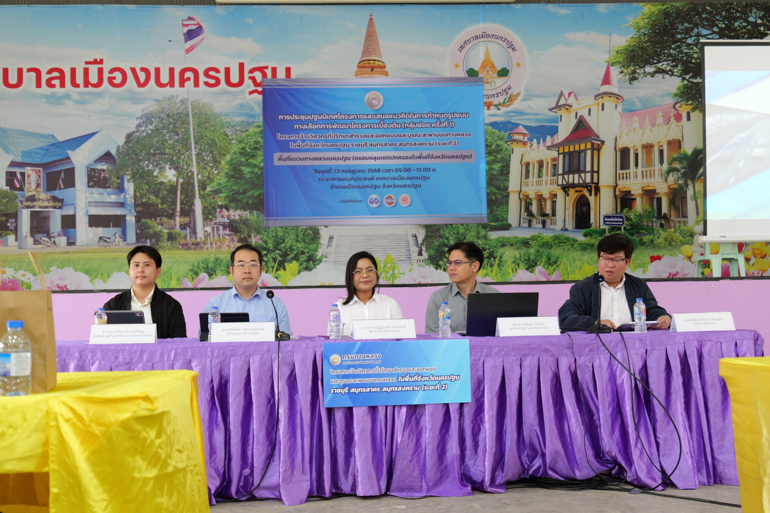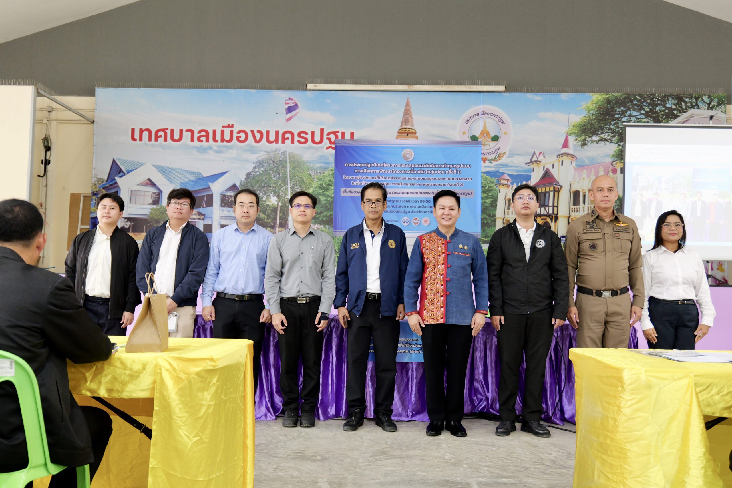 วันพุธที่ 23 กรกฎาคม 2568 เวลา 09.30 น. ณ อาคารอเนกประสงค์ เทศบาลเมืองนครปฐม อำเภอเมืองนครปฐม จังหวัดนครปฐม นายอรรถวุฒิ พึ่งเนียม รองผู้ว่าราชการจังหวัดนครปฐม เป็นประธานในพิธีเปิดการประชุมปฐมนิเทศโครงการและเสนอแนวคิดในการกำหนดรูปแบบทางเลือกการพัฒนาโครงการเบื้องต้น (กลุ่มย่อย ครั้งที่ 1) โครงการจ้างวิศวกรที่ปรึกษาสำรวจและออกแบบและบูรณะสะพานบนทางหลวงในพื้นที่จังหวัดนครปฐม ราชบุรี สมุทรสาคร สมุทรสงคราม (ระยะที่ 2) นายจุมพต พุ่มประดับ รองผู้อำนวยการแขวงทางหลวงนครปฐม กล่าวรายงาน