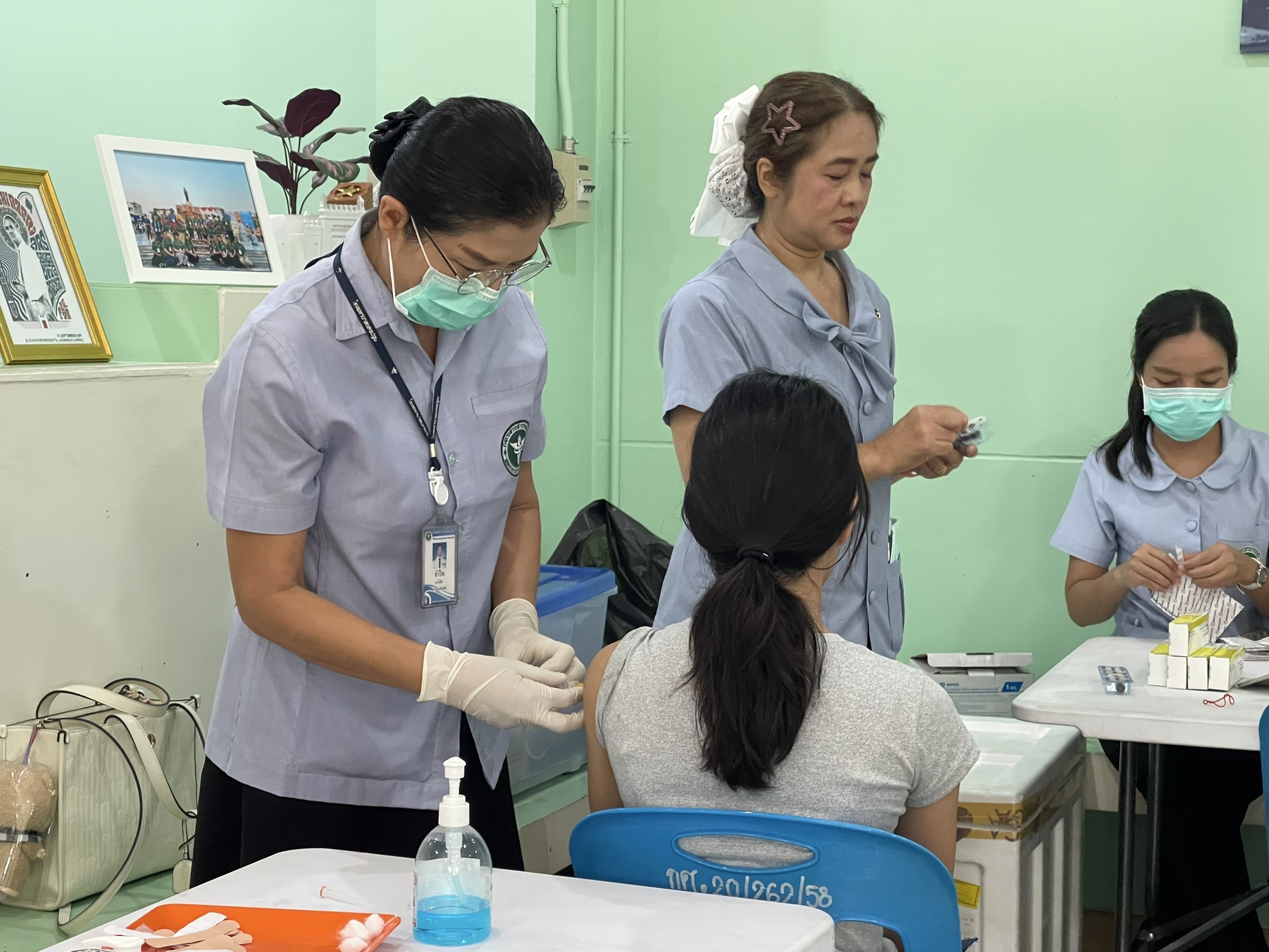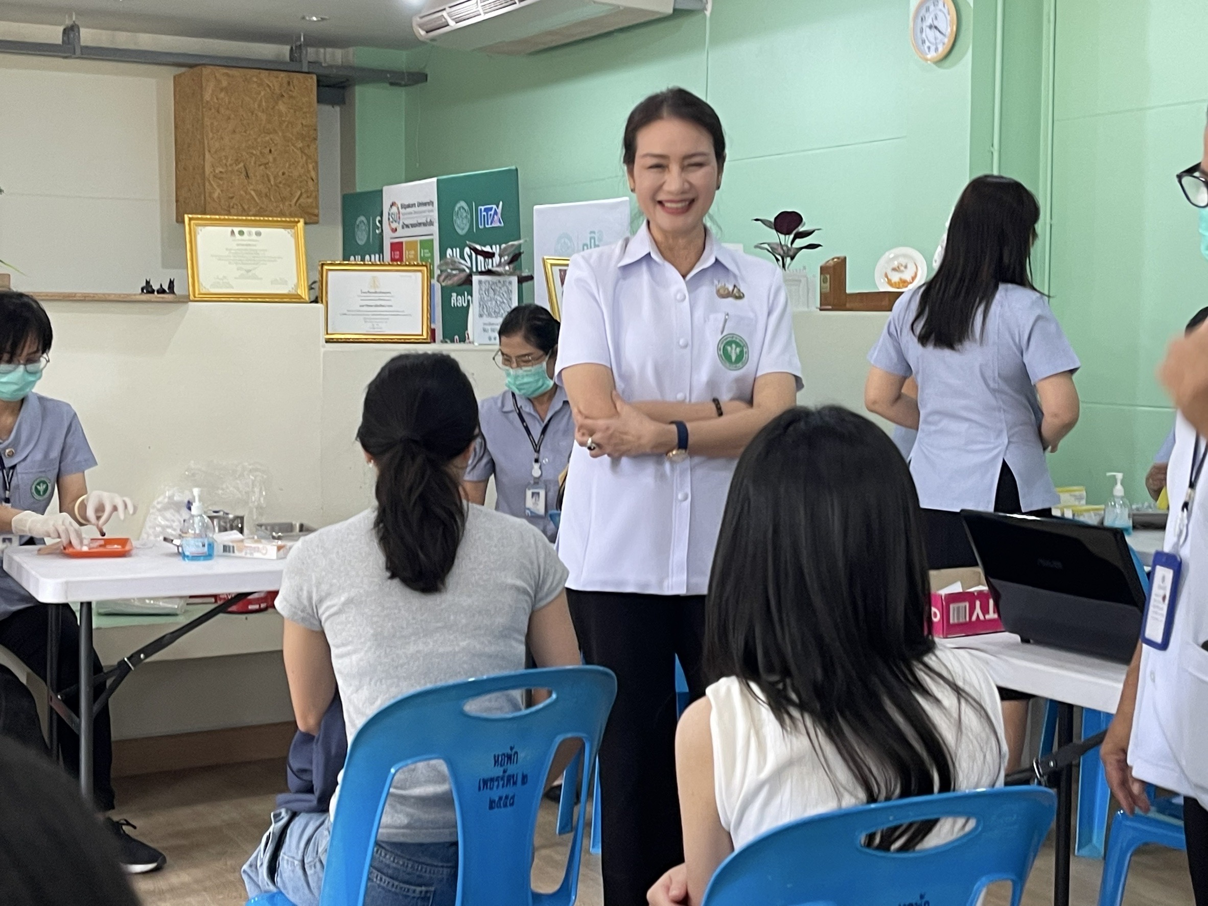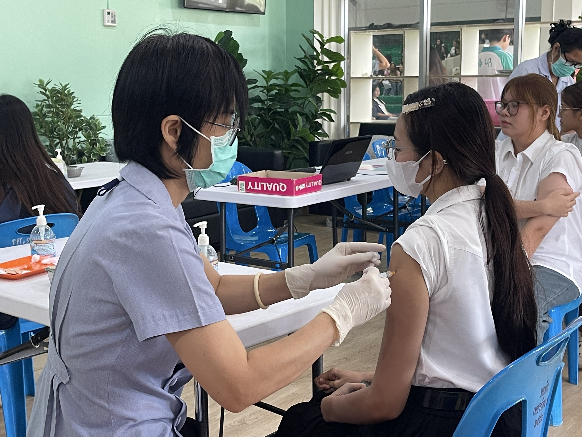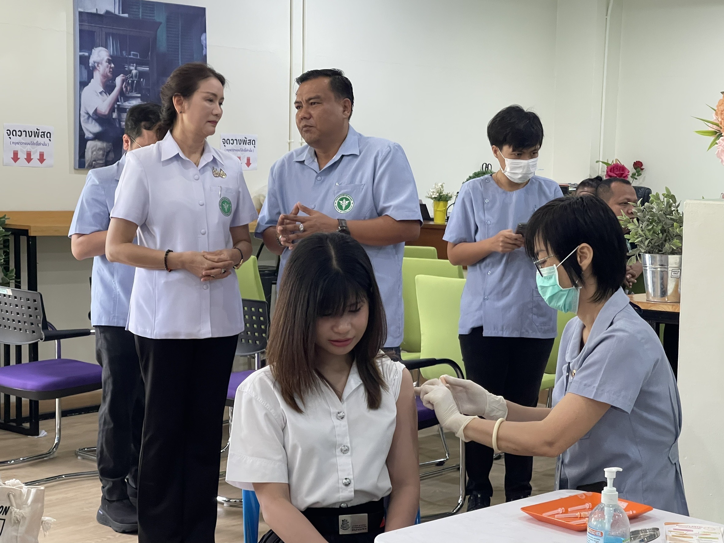 วันที่ 24 กรกฎาคม 2568 สำนักงานป้องกันควบคุมโรคที่ 5 จังหวัดราชบุรี (สคร.5 ราชบุรี) ลงพื้นที่ติดตามและสนับสนุนการดำเนินงานในโครงการ “ฉีดวัคซีนป้องกันการติดเชื้อไวรัสเอชพีวี (HPV) ชนิด 9 สายพันธุ์ สำหรับนักศึกษาหญิงไทย ในกำกับสถาบันอุดมศึกมศึกษาสังกัดกระทรวงการอุดมศึกษา วิทยาศาสตร์ วิจัยและนวัตกรรม” ให้แก่นักศึกษาหญิง มหาวิทยาลัยศิลปากร จังหวัดนครปฐม จำนวน 285 คน เพื่อสร้างเสริมภูมิคุ้มกัน ลดความเสี่ยงการเกิดโรคมะเร็งปากมดลูกในอนาคต