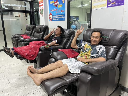 นายจักรพงศ์ ชื่นใจ อายุ38ปี ชาวบ้านที่เดินมาทางมาบริจาคเลือด เผยว่า หลังทราบข่าวจากเพจโรงพยาบาลด่านช้าง เมื่อช่วงเย็นที่ผ่านมา ก็รีบเดินทางมาที่โรงพยาบาลด่านช้าง เพื่อบริจาคเลือด โดยปกติแล้วจะมาบริจาคเลือดบ่อยครั้ง แต่ในครั้งนี้มาบริจาคเลือด เผื่อฉุกเฉินไว้สำรองให้กับพี่น้องและทหารชายแดน ฝากเป็นกำลังใจให้ คนในพื้นที่เข้มแข็งและสู้ต่อไป