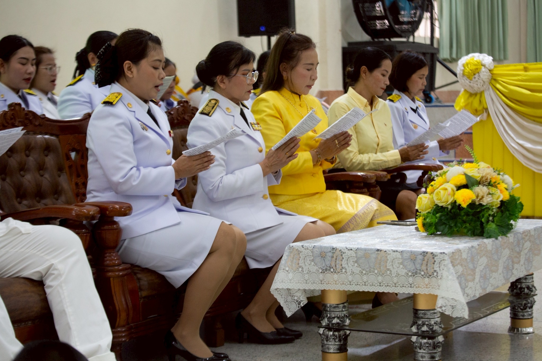 จากนั้น พระครูปลัดสิทธิวัฒน์ (หลวงพี่น้ำฝน) ผู้รักษาการแทนเจ้าอาวาสวัดไผ่ล้อม พระอารามหลวง จังหวัดนครปฐม และคณะสงฆ์วัดไผ่ล้อมฯ นำเข้าสู่พิธีเจริญพระพุทธมนต์เฉลิมพระเกียรติ (บทรัตนปริตร) ถวายพระพรชัยมงคล และพิธีถวายสัตย์ปฏิญาณเพื่อเป็นข้าราชการที่ดีของแผ่นดิน แด่พระบาทสมเด็จพระเจ้าอยู่หัว เนื่องในโอกาสมหามงคลเฉลิมพระชนมพรรษา วันที่ 28 กรกฎาคม 2568 เป็นจบพิธี