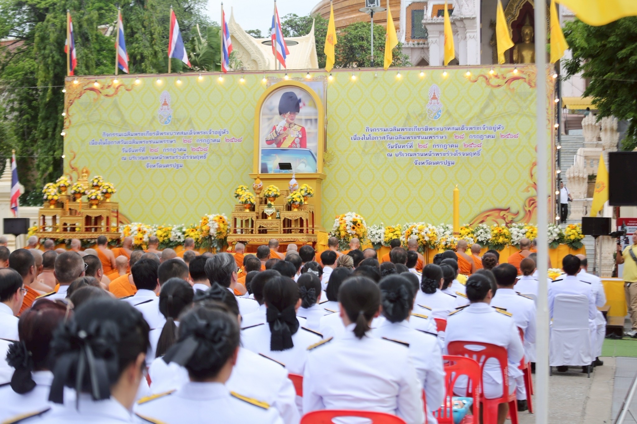 วันที่ 28 กรกฎาคม 2568 ที่บริเวณลานหน้าพระร่วงโรจนฤทธิ์ องค์พระปฐมเจดีย์ อำเภอเมือง จังหวัดนครปฐม นางสาวอโรชา นันทมนตรี ผู้ว่าราชการจังหวัดนครปฐม เป็นประธานพิธีเจริญพระพุทธมนต์และเจริญจิตตภาวนาเฉลิมพระเกียรติ ถวายพระราชกุศลแด่ พระบาทสมเด็จพระเจ้าอยู่หัว เนื่องในโอกาสวันเฉลิมพระชนมพรรษา 28 กรกฎาคม 2568 โดยมีพระราชวชิรสุตาภรณ์ เจ้าคณะจังหวัดนครปฐม เจ้าอาวาสวัดบางช้างเหนือ พร้อมด้วย พระเถรานุเถระ พระสงฆ์ หัวหน้าส่วนราชการ นายอำเภอ ข้าราชการและเจ้าหน้าที่จากหน่วยงานต่างๆ ตลอดองค์กรปกครองส่วนท้องถิ่น ผู้นำชุมชน จิตอาสาพระราชทาน อุบาสก อุบาสิกา นักเรียนนักศึกษา และประชาชน ร่วมพิธีในครั้งนี้ เพื่อแสดงความจงรักภักดีและสำนึกในพระมหากรุณาธิคุณอีกทั้งเป็นการเทิดทูนสถาบันพระมหากษัตริย์ ด้วยการทำกิจกรรมทางพระพุทธศาสนาร่วมกัน โดยมีสถาบันพระมหากษัตริย์เป็นศูนย์รวมจิตใจของพสกนิกรชาวไทย