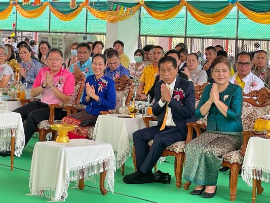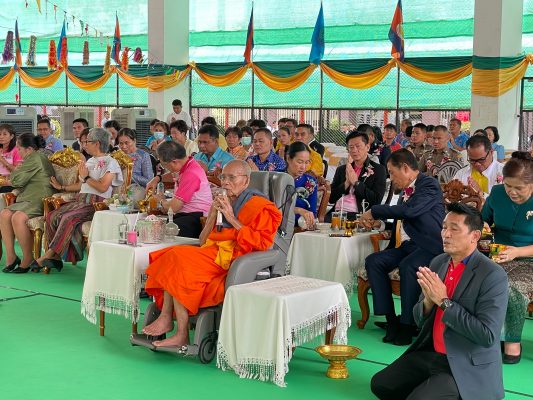 นางอภิญญา เอี่ยมอำภา นายกลวัชร ทรัพย์ส่งสุข รองผู้ว่าราชการจังหวัดสุพรรณบุรี และนายวิษณุ ไล่ชะพิษ อธิการบดีมหาวิทยาลัยการกีฬาแห่งชาติ เป็นประธานฝ่ายฆราวาส พร้อมด้วย คณะผู้บริหารสังกัดมหาวิทยาลัยการกีฬาแห่งชาติ หัวหน้าส่วนราชการ นายอำเภอเมืองสุพรรณบุรี ศิษย์เก่าและผู้มีอุปการคุณเข้าร่วมพิธีเป็นจำนวนมาก