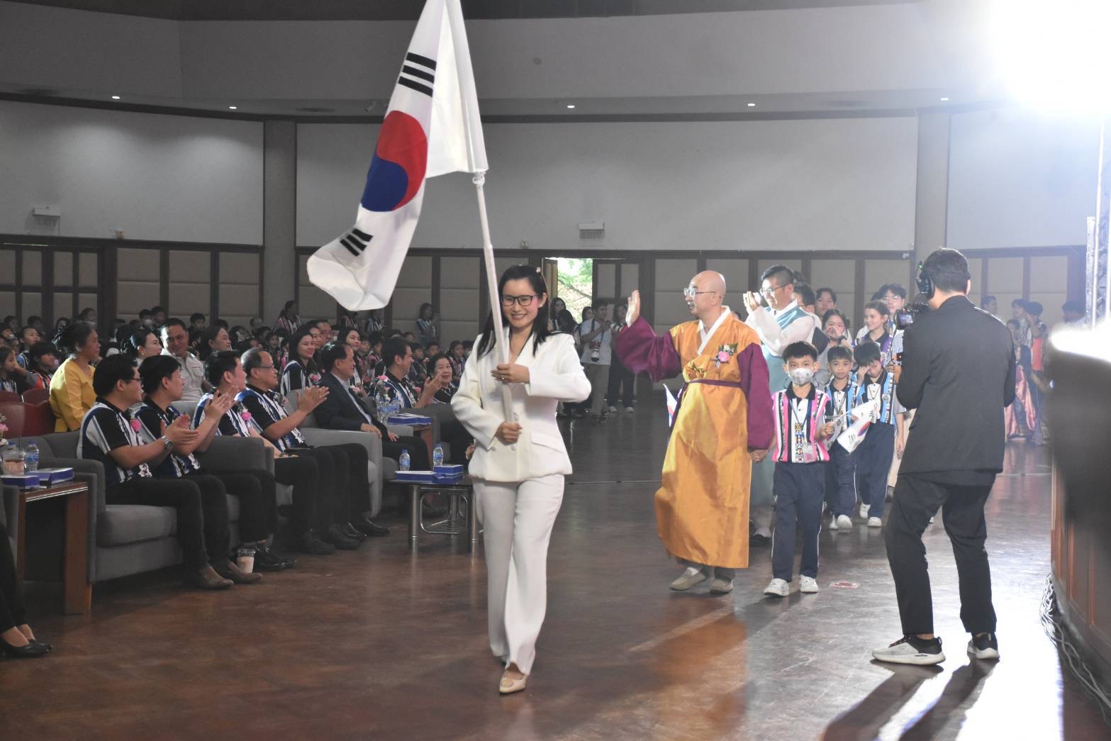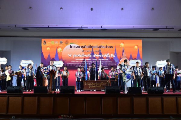โดยศิลปะการแสดงวัฒนธรรมของประเทศไทยได้เรียนเชิญศิลปินแห่งชาติคุณแม่ศรีนวล ขำอาจ และคณะลำตัดหวังเต๊ะ – แม่ศรีนวล ชุดการแสดงหน้าม่าน ชุดระบำไก่แจ้ และร่วมเรียนรู้กิจกรรมฐานการเรียนรู้ศิลปะท้องถิ่นโดยวิทยากรจาก 7 อำเภอ ให้เด็กและเยาวชน ได้เข้าร่วมกิจกรรมระบายสีลายอัตลักษณ์ปูรณฆฏาศรีทวารวดี มีการแหล่ตำนานสุบินกุมาร ซึ่งในช่วงบ่ายร่วมเปิดบูธ ตลาดนัด 7 ชุมชน และบูธจำหน่ายสินค้า อาทิ ผ้าทอลายอัตลักษณ์ “ปูรณฆฏาศรีทวารวดี” ผลิตภัณฑ์จากผ้าชุดไทยทรงดำ ผลิตภัณฑ์สบู่และอาหารจากฟักข้าว กางเกงลายปลาหมอไทยและลายทวารวดี ตะกร้าสานจากผักตบชวา ตะกร้าสาน จากใบมะพร้าว ผลิตภัณฑ์แปรรูปจากผลไม้ชุมชน มะขามแช่อิ่ม กล้วยธัญพืช และอื่น ๆ อีกมากมาย การจัดกิจกรรมในครั้งนี้มีวัตถุประสงค์เพื่อเป็นการส่งเสริมความเข้าใจและความภาคภูมิใจในอัตลักษณ์ท้องถิ่น ทำนุบำรุงศิลปวัฒนธรรม สร้างความร่วมมือของเครือข่ายในแต่ละชุมชน ส่งเสริมความร่วมมือในศิลปะวัฒนธรรมระหว่างประเทศ ภายใต้การ MOU ของโรงเรียนในขณะเดียวกันช่วยสร้างแรงบันดาลใจผ่านการเรียนรู้จากชุมชน อีกทั้งเป็นการเชื่อมโยงศิลปะวัฒนธรรมและประเพณี เพื่อให้นักเรียนได้เรียนรู้อัตลักษณ์วิถีชีวิตความเป็นอยู่ประเพณีของจังหวัดนครปฐมทำให้เกิดแรงบันดาลใจ เกิดการประยุกต์ใช้ในชีวิตประจำวัน ความภาคภูมิใจ การอนุรักษ์ และการพัฒนาต่อยอดศิลปะวัฒนธรรมไทยอย่างยั่งยืนสืบต่อไป