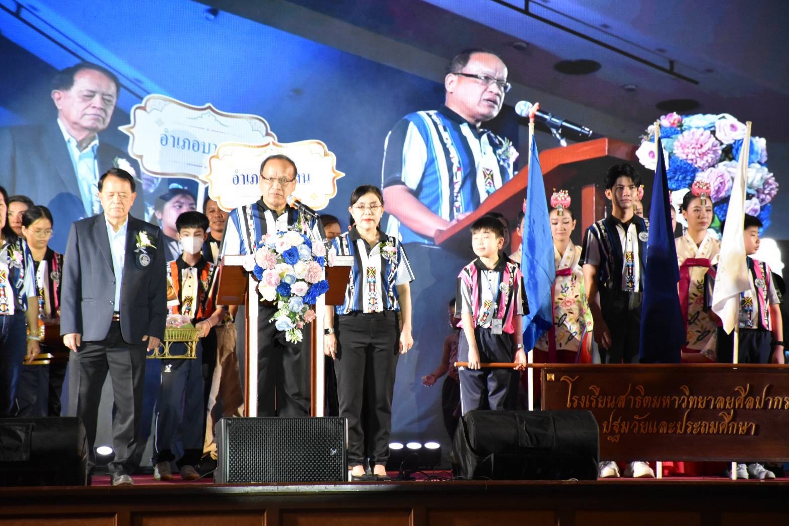 วันที่ 8 สิงหาคม 2568 เวลา 07.30 น. ที่ศูนย์ศิลปวัฒนธรรมเฉลิมพระเกียรติ 6 รอบ พระชนมพรรษา โรงเรียนสาธิตมหาวิทยาลัยศิลปากร (ปฐมวัยและประถมศึกษา) ร่วมกับสำนักงานวัฒนธรรมจังหวัดนครปฐม จัดโครงการศิลปินแห่งศิลปากร ปีการศึกษา 2568 “7 ชุมชนบ้านฉัน อัศจรรย์พื้นถิ่น” (Community Canvas : Local Inspiration)” โดยมี นายรณภพ เวียงสิมมา รองผู้ว่าราชการจังหวัดนครปฐม ประธานในพิธีเปิดฯ ศ.ดร.ภก.ธนะเศรษฐ์ ง้าวหิรัญพัฒน์ อธิการบดีมหาวิทยาลัยศิลปากร กล่าวรายงานวัตถุประสงค์ของการจัดโครงการฯ พร้อมด้วย นางฐิติรัตน์ เรืองสังข์ วัฒนธรรมจังหวัดนครปฐม นางสาวอรพร คัมภีรศาสตร์ ผู้อำนวยการกลุ่มส่งเสริมศาสนา ศิลปะและวัฒนธรรม ศ.ดร.คณิต เขียววิชัย คณบดี คณะศึกษาศาสตร์ ผศ.ดร.มาเรียม นิลพันธุ์ ที่ปรึกษาคณะกรรมการอำนวยการโรงเรียน ผศ.ดร.วิสูตร โพธิ์เงิน ผู้อำนวยการโรงเรียนฯ คณาจารย์ คณะผู้บริหารสมาคมผู้ปกครองและครูฯ สภาวัฒนธรรมจังหวัด อำเภอ ชุมชนทั้ง 7 อำเภอ และนักศึกษา จาก CIOFF @Korea นางศรีนวล ขำอาจ ศิลปินแห่งชาติ สาขาศิลปะการแสดง วิทยากรฐานการเรียนรู้ศิลปะจาก 7 อำเภอ เข้าร่วมโครงการฯ
