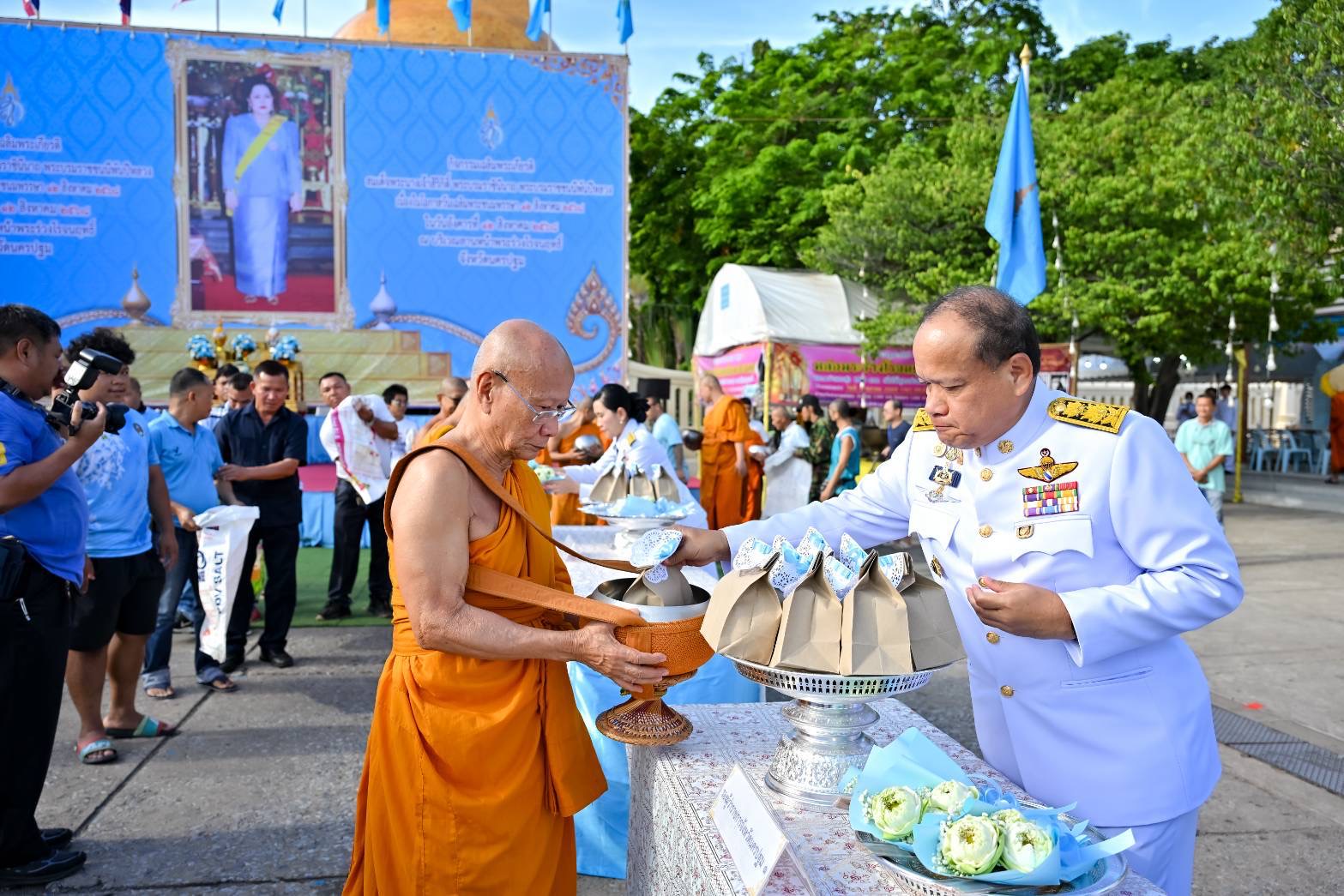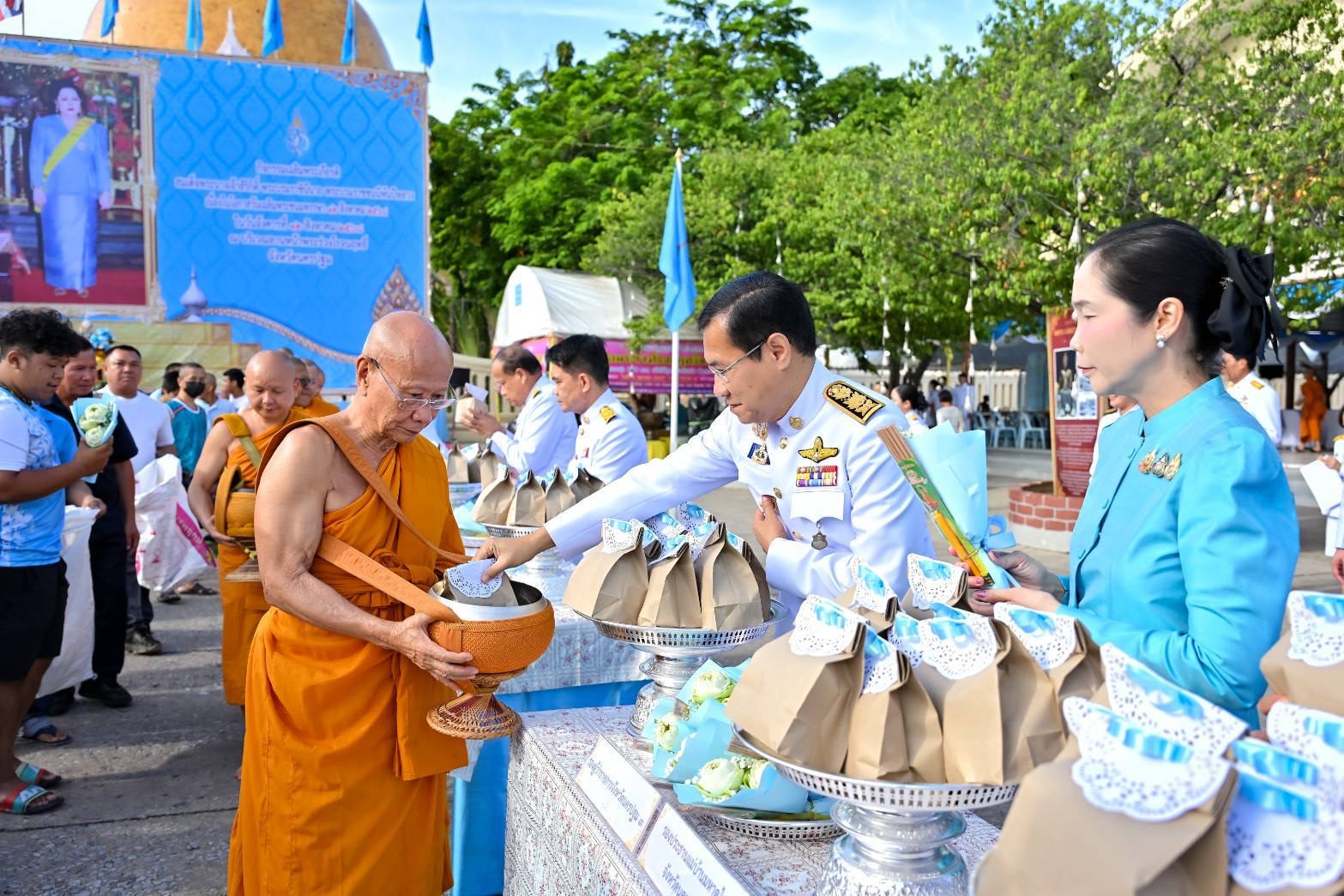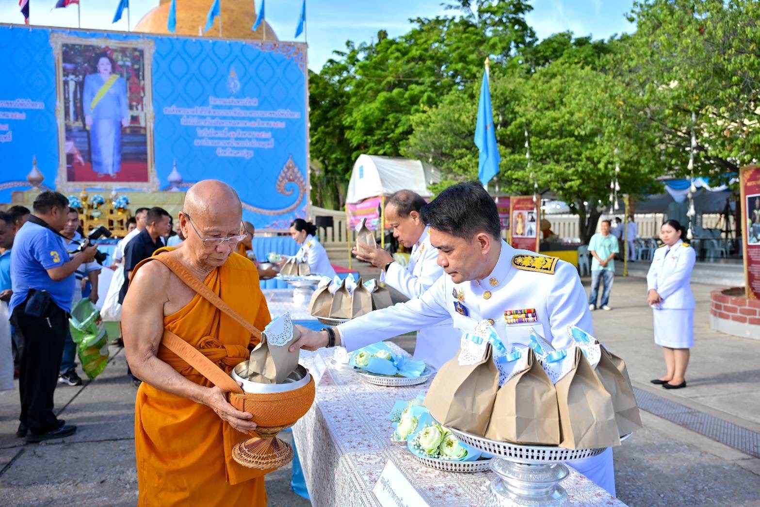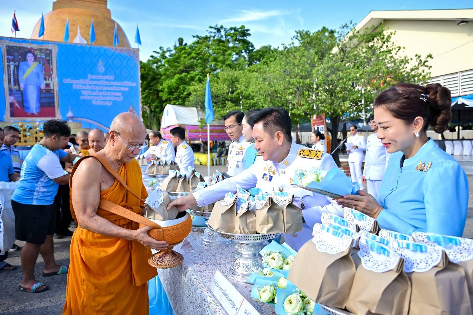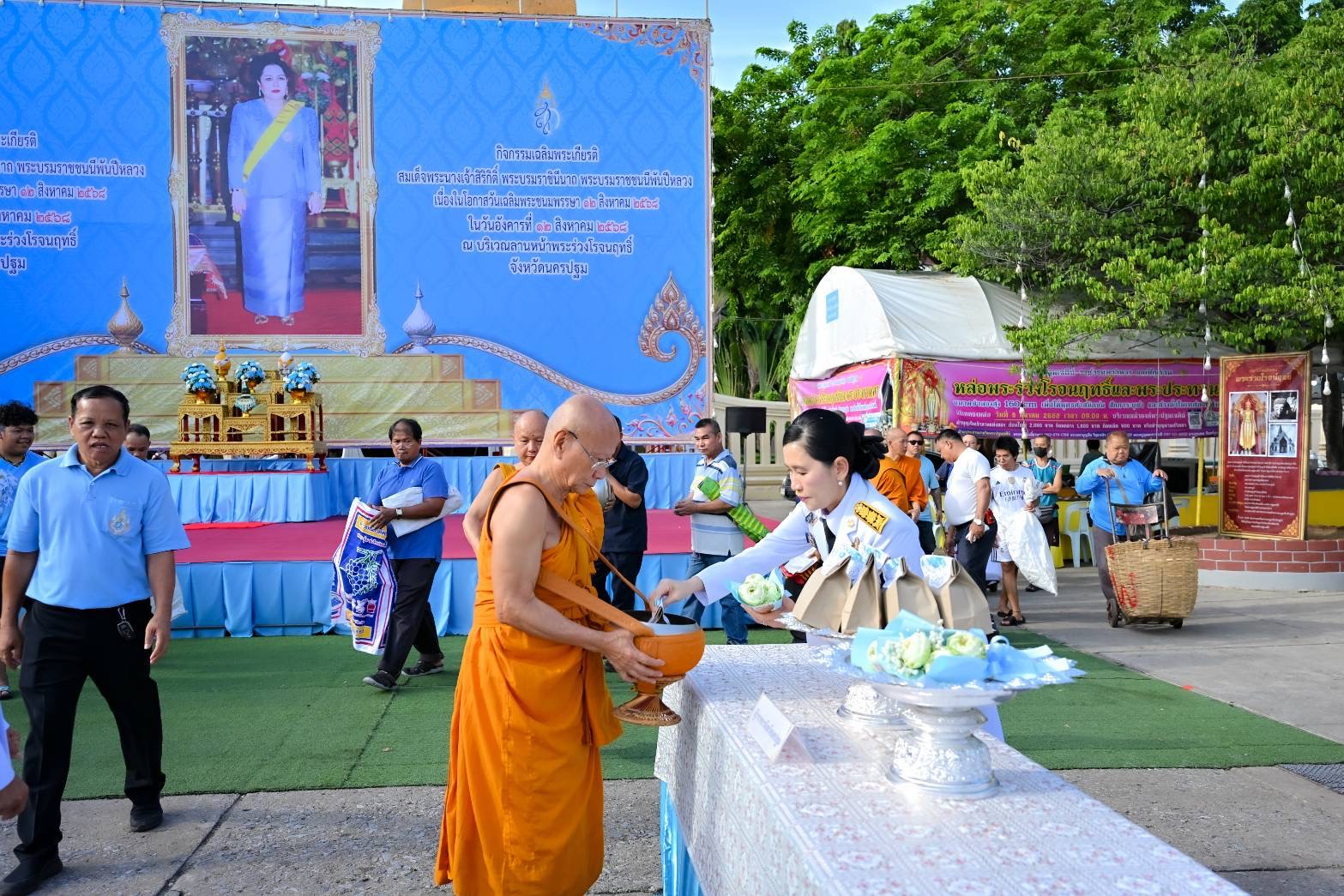 จากนั้น ผู้ว่าราชการจังหวัดนครปฐม นำหัวหน้าส่วนราชการ ข้าราชการ และประชาชน ร่วมทำบุญตักบาตรข้าวสาร อาหารแห้ง โดยพระธรรมวชิรเจติยาจารย์ ที่ปรึกษาเจ้าคณะภาค 14 รักษาการเจ้าอาวาสวัดพระปฐมเจดีย์ ราชวรมหาวิหาร นำพระสงฆ์สามเณร 99 รูป รับบิณฑบาต ณ บริเวณลานหน้าพระร่วงโรจนฤทธิ์ฯ องค์พระปฐมเจดีย์ เพื่อถวายพระราชกุศลแด่ สมเด็จพระนางเจ้าสิริกิติ์ พระบรมราชินีนาถ พระบรมราชชนนีพันปีหลวง อีกทั้งแสดงออกถึงความจงรักภักดี และสำนึกในพระมหากรุณาธิคุณ ตลอดจนเป็นการเทิดทูนสถาบันพระมหากษัตริย์ ด้วยการทำกิจกรรมทางพระพุทธศาสนา