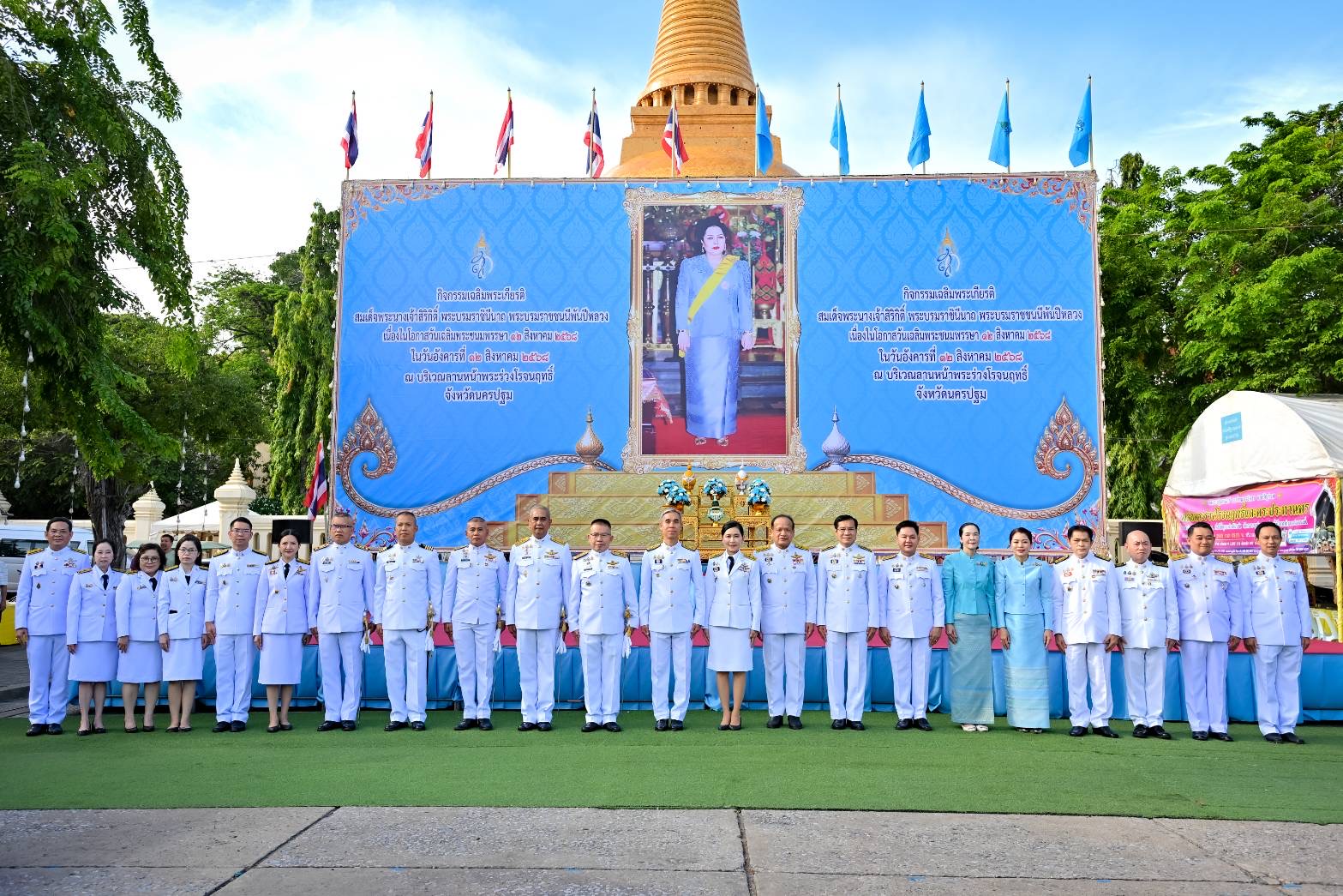วันที่ 12 สิงหาคม 2568 ที่ศาลากองอำนวยการ องค์พระปฐมเจดีย์ อำเภอเมือง จังหวัดนครปฐม นางสาวอโรชา นันทนตรีผู้ว่าราชการจังหวัดนครปฐม เป็นประธานในพิธีเจริญพระพุทธมนต์ และพิธีทำบุญตักบาตรถวายพระราชกุศลแด่ สมเด็จพระนางเจ้าสิริกิติ์ พระบรมราชินีนาถ พระบรมราชชนนีพันปีหลวง เนื่องในโอกาสมหามงคลเฉลิมพระชนมพรรษา 12 สิงหาคม 2568 โดยมี พระธรรมวชิรเจติยาจารย์ ที่ปรึกษาเจ้าคณะภาค 14 รักษาการเจ้าอาวาสวัดพระปฐมเจดีย์ ราชวรมหาวิหาร นำคณะสงฆ์สวดเจริญพระพุทธมนต์ พร้อมด้วย รองผู้ว่าราชการจังหวัด รองนายกเหล่ากาชาดจังหวัด หัวหน้าส่วนราชการ ข้าราชการ ศาล ทหาร ตำรวจ และประชาชนชาวจังหวัดนครปฐม ร่วมพิธีในครั้งนี้