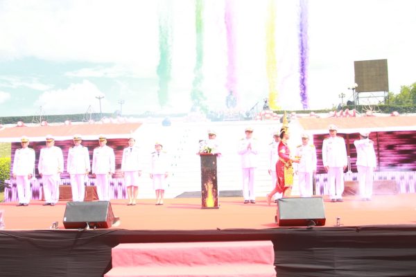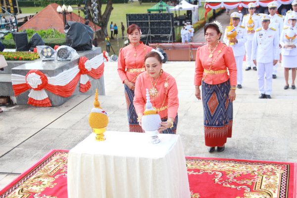 จากนั้น ภายหลังแต่หน่วยงานทุกภาคส่วนได้วางพานพุ่มทอง-พุ่มเงินถวายราชสักการะ ผู้ว่าราชการจังหวัดฯ ประธานในพิธีได้ขึ้นวางพานพุ่มถวายราชสักการะ และกล่าวคำกล่าวถวายราชสดุดี ใจความว่า “ ข้าพระพุทธเจ้า พร้อมด้วยข้าราชการ ฝ่ายตุลาการ ทหาร ตำรวจ พลเรือน และพสกนิกรชาวจังหวัดประจวบศรีขันธ์ ที่ได้มาพร้อมกันอยู่ ณ ที่แห่งนี้ ขอน้อมรำลึกถวายราชสดุดี เนื่องในวันวิทยาศาสตร์แห่งชาติ ฯ พระบาทสมเด็จพระจอมเกล้าเจ้าอยู่หัว ได้เสด็จมาตั้งค่ายที่ประทับ ณ บ้านหว้ากอ พร้อมด้วยข้าราชบริพาร และชาวต่างประเทศจำนวนมาก เพื่อทอดพระเนตรสุริยุปราคา ที่ทรงคำทรงคำนวณล่วงหน้าด้วยพระองค์เองอย่างถูกต้อง และวันเวลาดังกล่าว ก็คือวันขึ้น 1 ค่ำ เดือน 10 ปีมะโรง ตรงกับวันที่ 18 สิงหาคม พ.ศ.2411 เวลา 4 โมงเช้า กับ 16 นาที เหตุการณ์สุริยุปราคาได้ปรากฏขึ้น ตรงตามที่ได้ทรงคำนวณไว้ทุกประการ นับเป็นที่น่ามหัศจรรย์และประจักษ์ชัดในพระปรีชาญาณ ในทางดาราศาสตร์และการคำนวนชั้นสูง เป็นที่ยอมรับและชื่นชมในหมู่คณะทูตานุทูต นักดาราศาสตร์ทั้งหลายที่ได้มาพร้อมกันเป็นจำนวนมาก