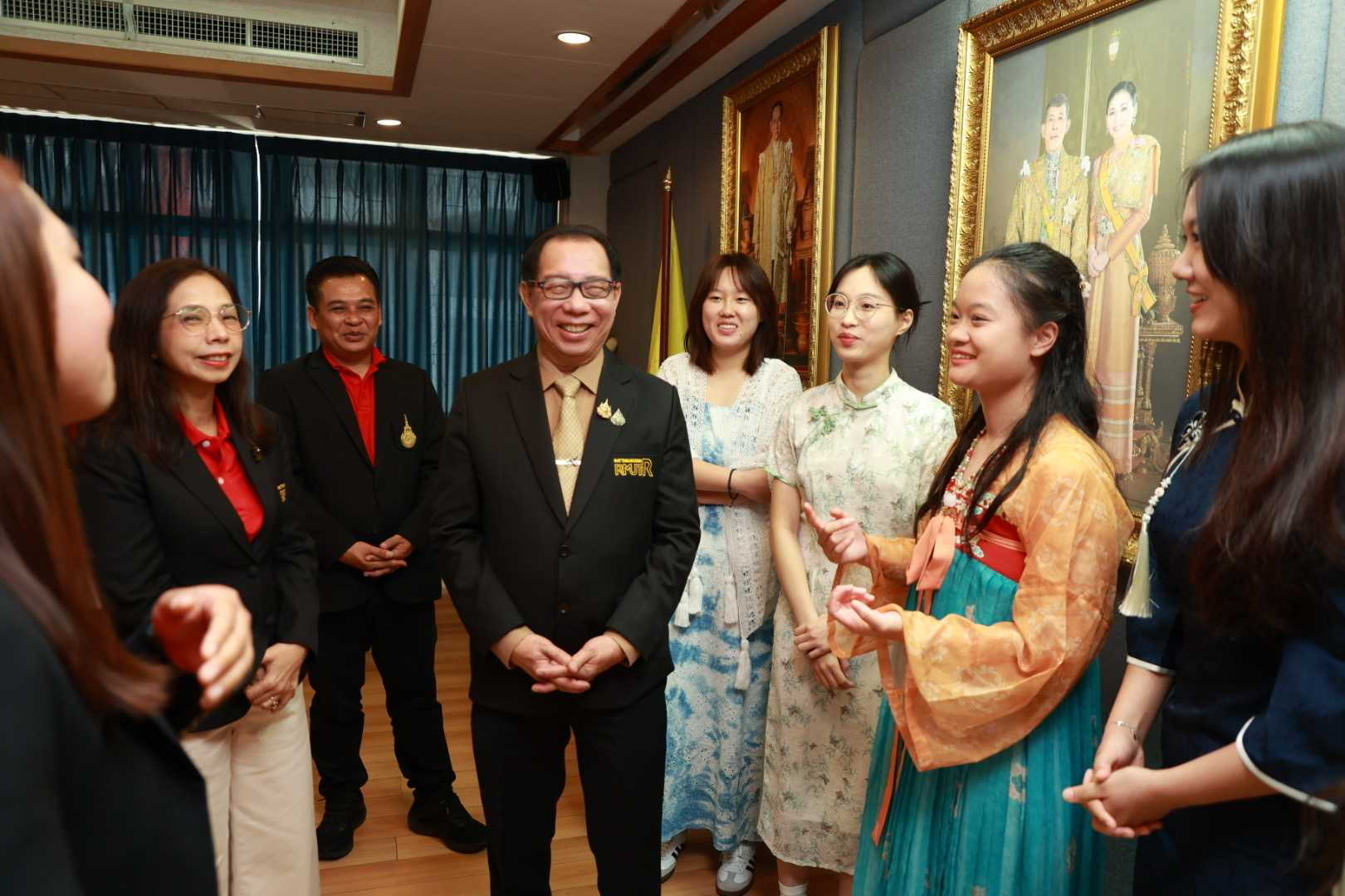 วันอังคารที่ 2 กันยายน 2568 มทร.รัตนโกสินทร์ นำโดย รศ.ดร.อุดมวิทย์ ไชยสกุลเกียรติ อธิการบดี เป็นประธานกล่าวต้อนรับนักศึกษาแลกเปลี่ยนจาก Lingnan Normal University สาธารณรัฐประชาชนจีน ณ ห้องประชุม 1 ชั้น 2 อาคารสำนักงานอธิการบดี มทร.รัตนโกสินทร์ ศาลายา โดยมี คณะผู้บริหาร พร้อมด้วยคณาจารย์ และผู้เข้าร่วมโครงการทุกท่านให้การต้อนรับอย่างอบอุ่น โครงการนี้จัดขึ้นโดยคณะศิลปศาสตร์ มีวัตถุประสงค์เพื่อส่งเสริมการเรียนรู้ด้านภาษาและศิลปวัฒนธรรมไทย-จีน รวมถึงสร้างประสบการณ์ตรงให้แก่นักศึกษา ตลอดจนเชื่อมความสัมพันธ์ระหว่างสองสถาบันอุดมศึกษาในระดับนานาชาติ การแลกเปลี่ยนดังกล่าวมีนักศึกษาจาก Lingnan Normal University จำนวน 7 คน เดินทางเข้าร่วมโครงการ ระหว่างวันที่ 1 สิงหาคม – 12 กันยายน 2568 โดยนักศึกษาได้เข้าร่วมกิจกรรมการเรียนรู้ด้านภาษาไทย และภาษาอังกฤษ การเรียนรู้ศิลปวัฒนธรรมไทย ตลอดจนการแลกเปลี่ยนมุมมองด้านวัฒนธรรมและวิถีชีวิตกับนักศึกษา มทร.รัตนโกสินทร์ กิจกรรมครั้งนี้นับเป็นอีกหนึ่งก้าวสำคัญในการขับเคลื่อนพันธกิจของมหาวิทยาลัย ในการยกระดับการศึกษาและการแลกเปลี่ยนวัฒนธรรมสู่ความเป็นสากล พร้อมทั้งเป็นการสานสัมพันธ์มิตรภาพระหว่างประเทศไทยและสาธารณรัฐประชาชนจีนอย่างยั่งยืน