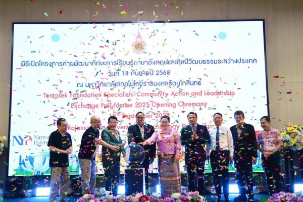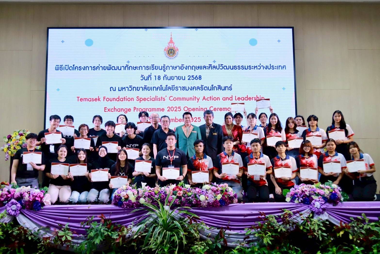 วันพฤหัสบดีที่ 18 กันยายน 2568 มทร.รัตนโกสินทร์ โดย รศ.ดร.อุดมวิทย์ ไชยสกุลเกียรติ อธิการบดี มอบหมาย รศ.ดร.อาคีรา ราชเวียง รองอธิการบดี ร่วมพิธีเปิดโครงการ Temasek Foundation Specialists’ Community Action & Leadership Exchange Program 2025 (TF-SCALE 2025) โดยได้รับเกียรติจาก ดร.พันธุ์เพิ่มศักดิ์ อารุณี ผู้ช่วยปลัดกระทรวงการอุดมศึกษา วิทยาศาสตร์ วิจัยและนวัตกรรม เป็นประธานกล่าวเปิดโครงการและให้โอวาทแก่ผู้เข้าร่วมโครงการ โดยมีคณะอาจารย์และนักศึกษาจาก Nanyang Polytechnic สาธารณรัฐสิงคโปร์ และนักศึกษาจาก มทร.รัตนโกสินทร์ เข้าร่วมอย่างพร้อมเพรียง ทั้งนี้ รศ.ดร.อุดมวิทย์ ไชยสกุลเกียรติ อธิการบดี มทร.รัตนโกสินทร์ ได้มอบหมาย รศ.ดร.อาคีรา ราชเวียง มอบเกียรติบัตรแก่ผู้เข้าร่วมโครงการ ณ ห้องประชุม ชั้น 5 อาคารศูนย์การเรียนรู้และวิทยบริการเฉลิมพระเกียรติ มทร.รัตนโกสินทร์ ศาลายา