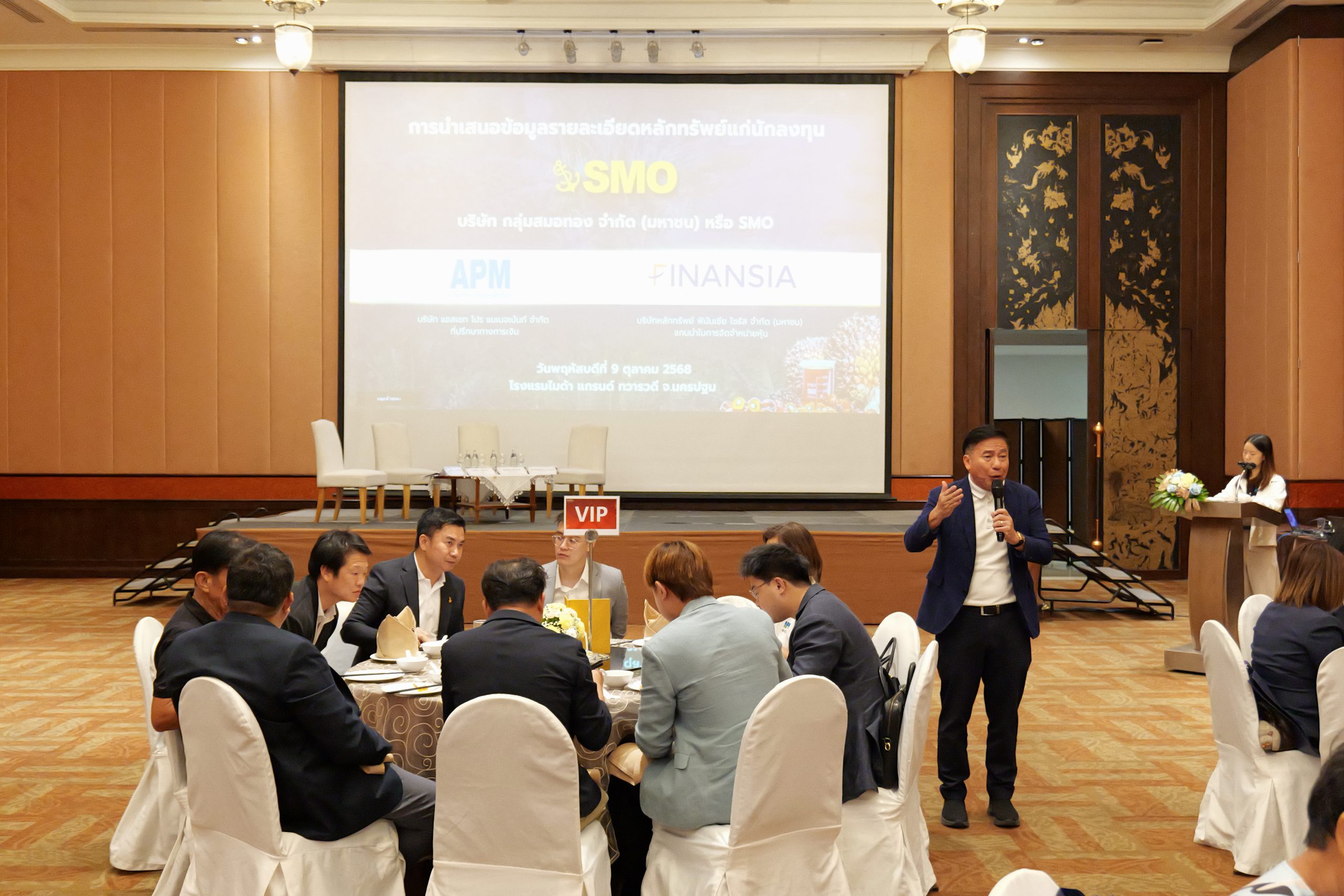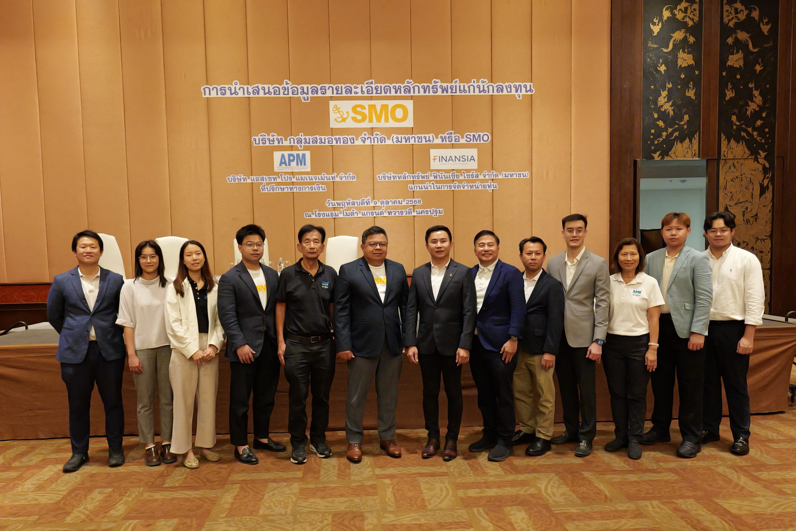 ดร.สมภพ ศักดิ์พันธ์พนม ประธานกรรมการ บริษัท แอสเซท โปร แมเนจเม้นท์ จำกัด หรือ APM ในฐานะที่ปรึกษาทางการเงินของ บริษัท กลุ่มสมอทอง จำกัด (มหาชน) หรือ SMO เปิดเผยว่า บริษัทฯ เตรียมที่จะเดินทางไปนำเสนอข้อมูลกับนักลงทุน หรือโรดโชว์ ของ SMO เพื่อเสนอขายหุ้นให้แก่ประชาชนเป็นครั้งแรก หรือ IPO จำนวน 231.60 ล้านหุ้น โดยจะเดินทางไปนำเสนอข้อมูลกับนักลงทุน 11 จังหวัดประกอบไปด้วย จังหวัดชลบุรีในวันที่ 8 ต.ค. จังหวัดราชบุรีและนครปฐมในวันที่ 9 ต.ค. จังหวัดพิษณุโลกและนครสวรรค์ในวันที่ 10 ต.ค. จังหวัดนครราชสีมาและขอนแก่นในวันที่ 14 ต.ค. จังหวัดเชียงใหม่ในวันที่ 15 ต.ค. อำเภอหาดใหญ่ จังหวัดสงขลาในวันที่ 16 ต.ค. จังหวัดสุราษฎร์ธานีในวันที่ 17 ต.ค.และปิดท้ายการนำเสนอข้อมูลกับนักลงทุนที่ตลาดหลักทรัพย์แห่งประเทศไทย กรุงเทพมหานครในวันที่ 20 ต.ค. 68
