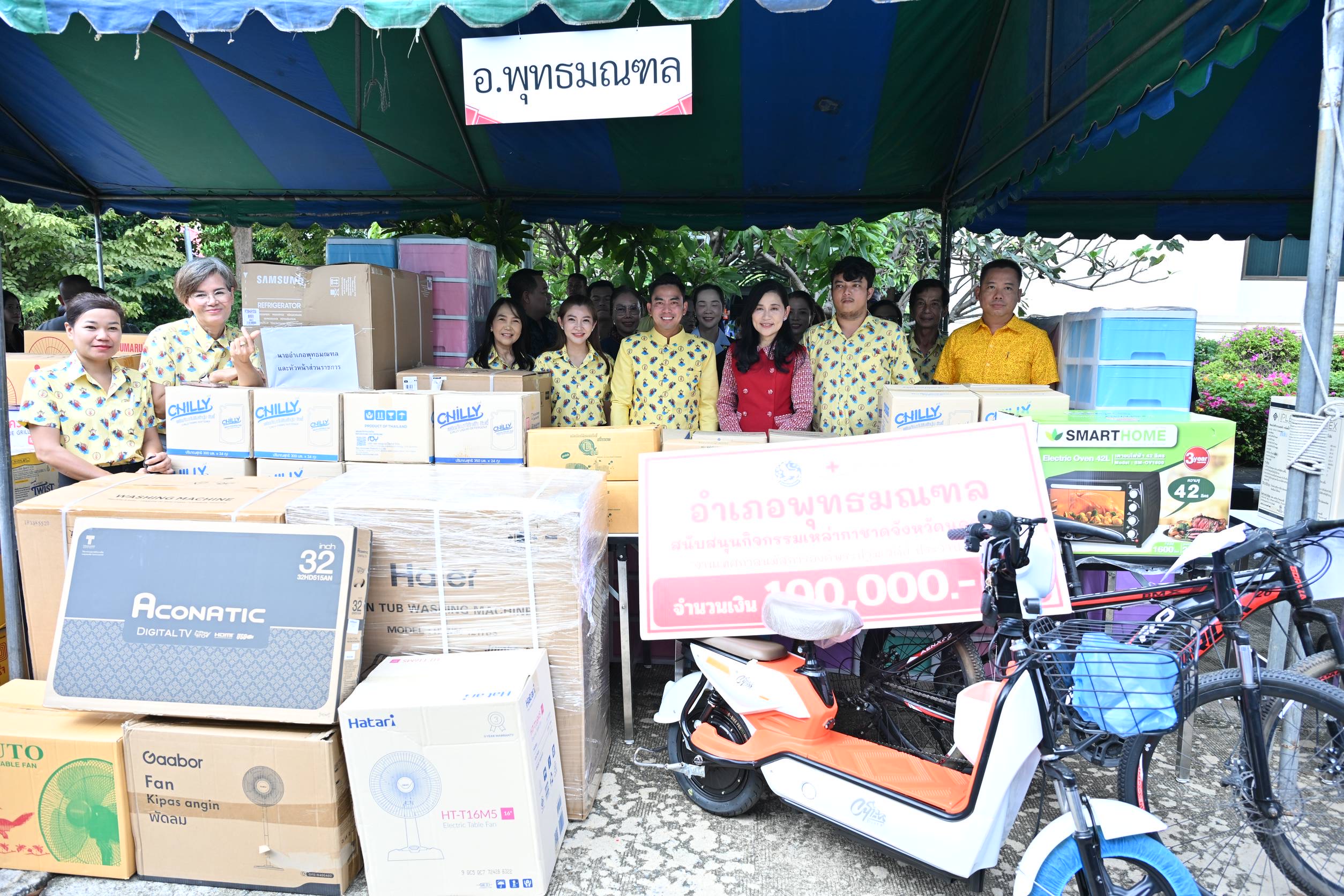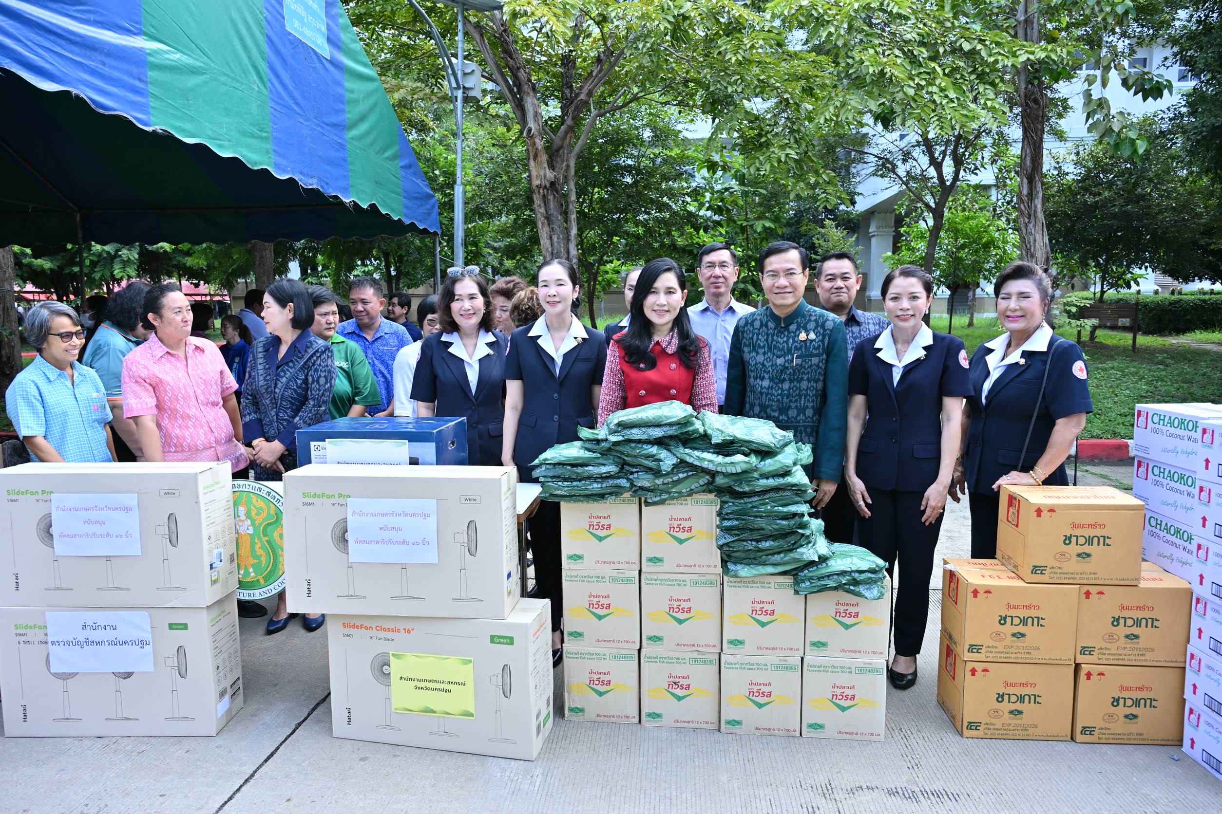 วันที่ 17 ตุลาคม 2568 ที่บริเวณหน้าสำนักงานเหล่ากาชาดจังหวัดนครปฐม อำเภอเมืองนครปฐม จังหวัดนครปฐม นางสาวอโรชา นันทมนตรี ผู้ว่าราชการจังหวัดนครปฐม เป็นประธานกิจกรรม รวมน้ำใจ ให้กาชาด ประจำปีงบประมาณ 2568 โดยมี นายปรีชา ดิลกพรเมธี รองผู้ว่าราชการจังหวัดนครปฐม พร้อมด้วย รองนายกเหล่ากาชาด หัวหน้าส่วนราชการประจำจังหวัด ร่วมรับมอบสิ่งของจากหน่วยงานภาครัฐ ภาคเอกชน สมาคม และชมรมต่างๆ ตลอดจนผู้มีจิตศรัทธา ทั้ง 7 อำเภอ ร่วมบริจาคเงินและนำสิ่งของมามอบให้กับเหล่ากาชาดจังหวัดนครปฐม อาทิ รถจักรยานยนต์ รถจักรยาน ตู้เย็น โทรทัศน์ หม้อหุงข้าว กระติกน้ำร้อน พัดลม เตารีด อาหารสำเร็จรูป เครื่องดื่ม และอื่นๆ อีกมากมาย
