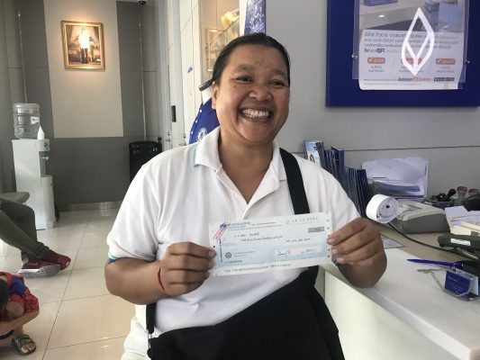 และเมื่อเช้าก็ได้ไปขึ้นเงินที่กองสลากโดยได้รับเช็คเงินสดจำนวนเงิน 5,970,000 บาทถ้วน โดยในวันนี้จึงได้มาพร้อมครอบครัวและญาติ เพื่อมาทำบุญ กราบไหว้พระเงินพระทองและสิ่งศักดิ์สิทธิ์ ที่วัดแห่งนี้ เพื่อเป็นการขอบคุณที่ให้ตอนมีโชคครั้งใหญ่ ก่อนจะเดินทางกลับบ้านที่จังหวัดอุบลราชธานี ซึ่งทางด้านพระครูยติธรรมานุยุติ (อาจารย์แป๊ะ)เกจิชื่อดังแห่งลุ่มน้ำนครชัยศรี ก็ได้ประพรมน้ำพระพุทธมนต์และมอบพระเงินพระทอง จำลองให้เป็นสิริมงคลไปบูชาอีกด้วย