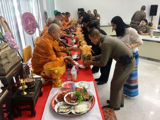 ซึ่งการทำบุญเลี้ยงพระ เนื่องในวันสถาปนาสำนักงานตำรวจแห่งชาติ ในวันที่17 ตุลาคม เพื่อความเป็นสิริมงคลและขวัญกำลังใจของเจ้าหน้าที่ตำรวจ ในการปฎิบัติหน้าที่ และได้มีการมอบเกียรติบัตรให้กับนายวิสูตร ธรรมอภิพล ประธาน กต.ตร.สภ.สามพราน ที่ให้การสนับสนุนกิจการตำรวจ