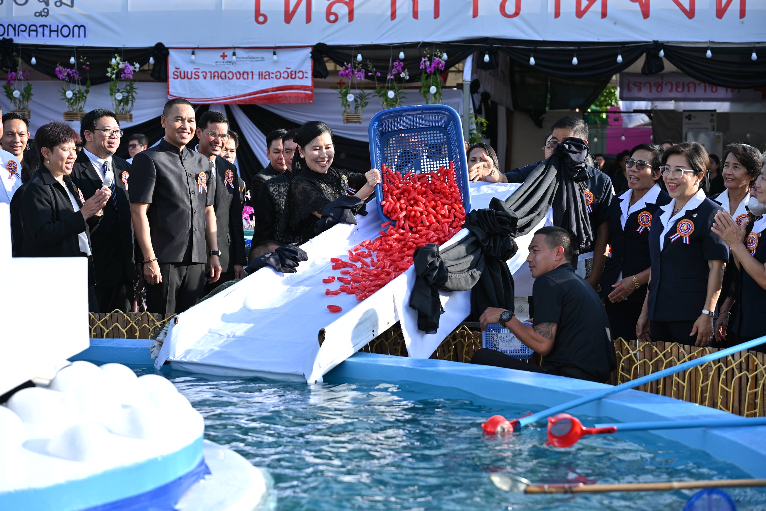 วันที่ 2 พฤศจิกายน 2568 ที่บริเวณหน้าพระร่วงโรจนฤทธิ์ องค์พระปฐมเจดีย์ อ.เมือง จ.นครปฐม นางสาวอโรชา นันทมนตรี ผู้ว่าราชการจังหวัดนครปฐม /นายกเหล่ากาชาดจังหวัดนครปฐม เป็นประธานเปิดกิจกรรมออกร้านมัจฉากาชาด ในงานเทศกาลนมัสการองค์พระปฐมเจดีย์ ประจำปี 2568 โดยมี รองผู้ว่าราชการจังหวัด รองนายกเหล่ากาชาดจังหวัด ผู้บังคับการตำรวจภูธรจังหวัด หัวหน้าส่วนราชการ สมาชิกเหล่ากาชาดจังหวัดร่วมพิธี