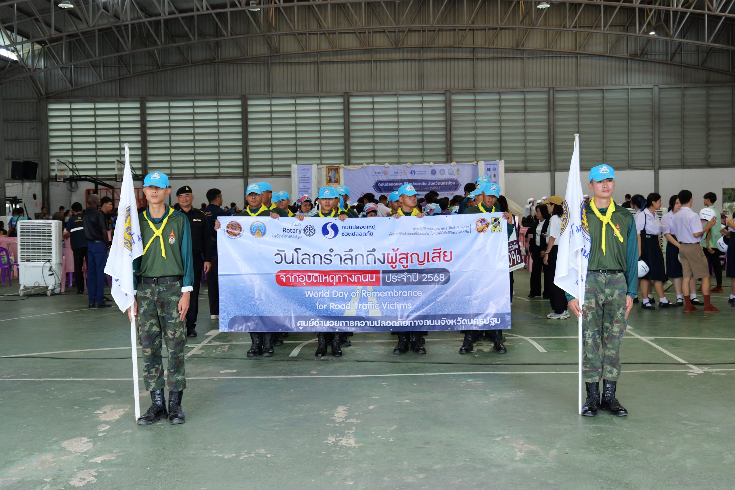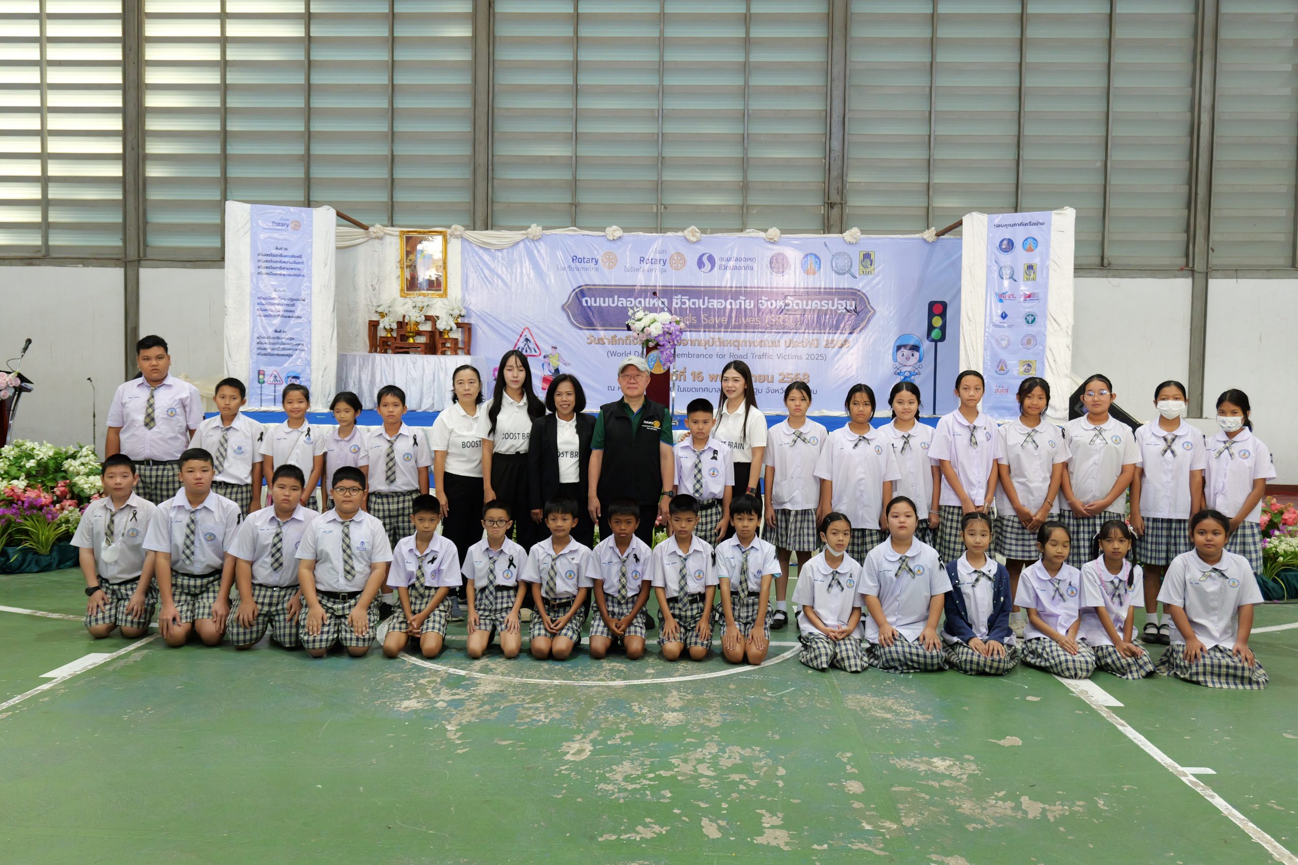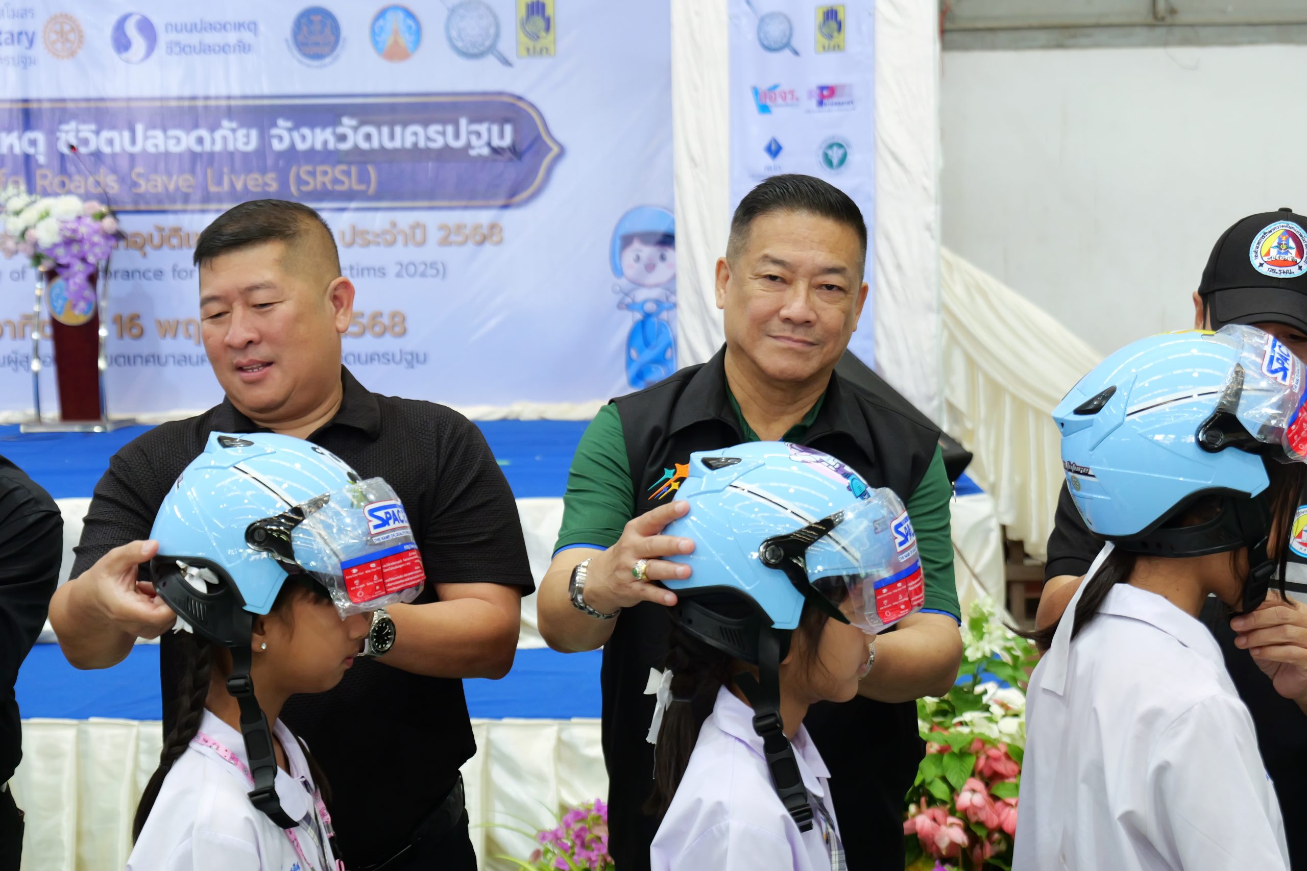 วันที่ 16 พฤศจิกายน 2568 ณ หอประชุมผู้สูงอายุ ในเขตเทศบาลนครนครปฐม จังหวัดนครปฐม สโมสรโรตารีทั้ง 12 แห่งในจังหวัดนครปฐม จัดงานโครงการ “ถนนปลอดเหตุ ชีวิตปลอดภัย (Safe Roads Save Lives) ชวน 700 เยาวชนนักเรียนผู้ปกครองครูอาจารย์ รวมพลคนทุกวัยที่ใช้รถเดินเท้าร่วมรณรงค์ ขับมอเตอร์ไซค์ใส่หมวกกันน็อค…