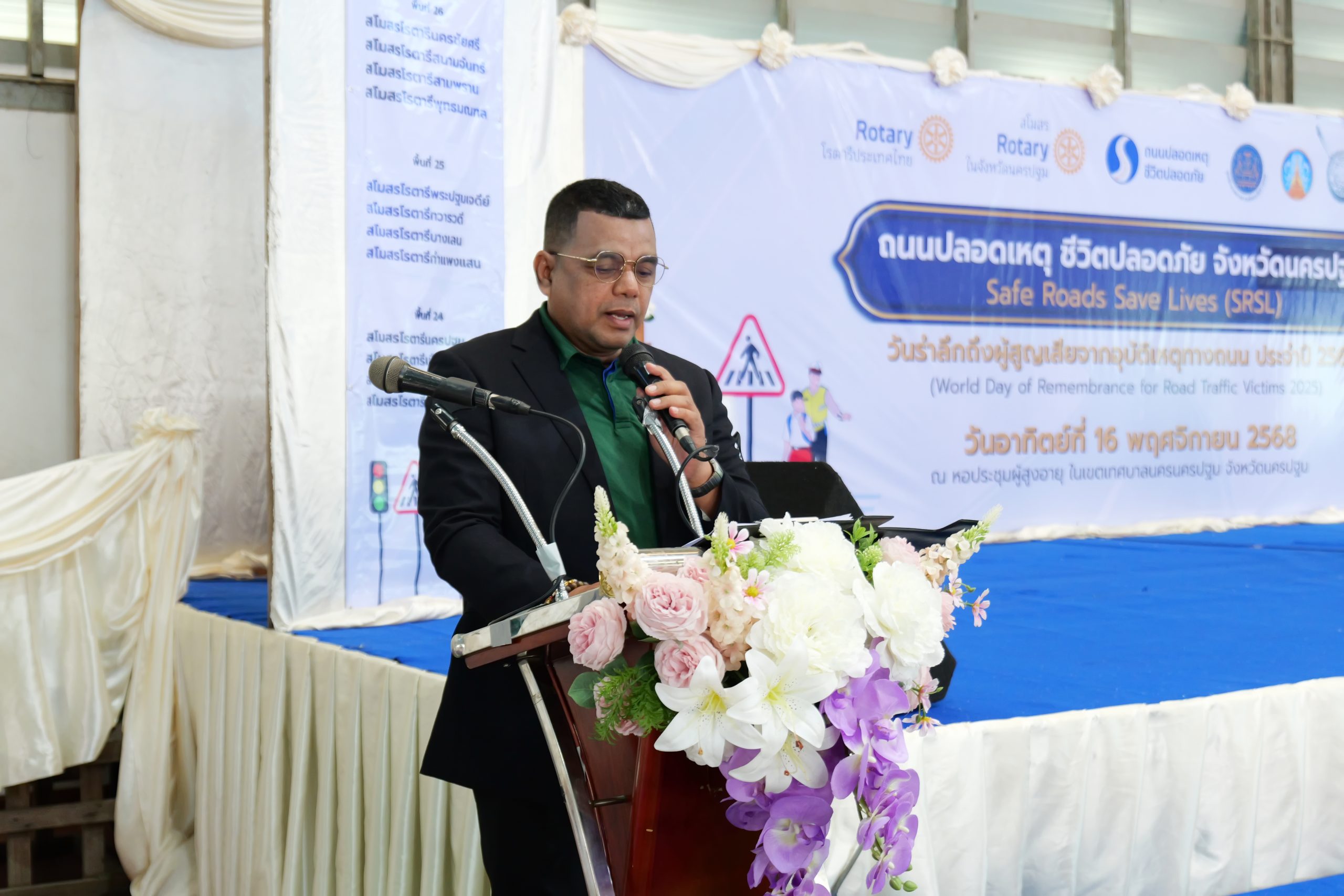 จากเจตนารมณ์ดังกล่าว สโมสรโรตารีในจังหวัดนครปฐมทั้ง 12 สโมสร จึงได้บูรณาการความร่วมมือกับหน่วยงานภาครัฐและภาคีเครือข่ายในจังหวัดในการจัดกิจกรรมรณรงค์ “ถนนปลอดเหตุ ชีวิตปลอดภัย จังหวัดนครปฐม” ขึ้นในวันนี้ วันอาทิตย์ที่ 16 พฤศจิกายน พุทธศักราช 2568 ณ หอประชุมผู้สูงอายุ ในเขตเทศบาลนครนครปฐม จังหวัดนครปฐม ซึ่งตรงกับ “วันโลกรำลึกถึงผู้สูญเสียชีวิตจากอุบัติเหตุทางถนน ประจำปี 2568”