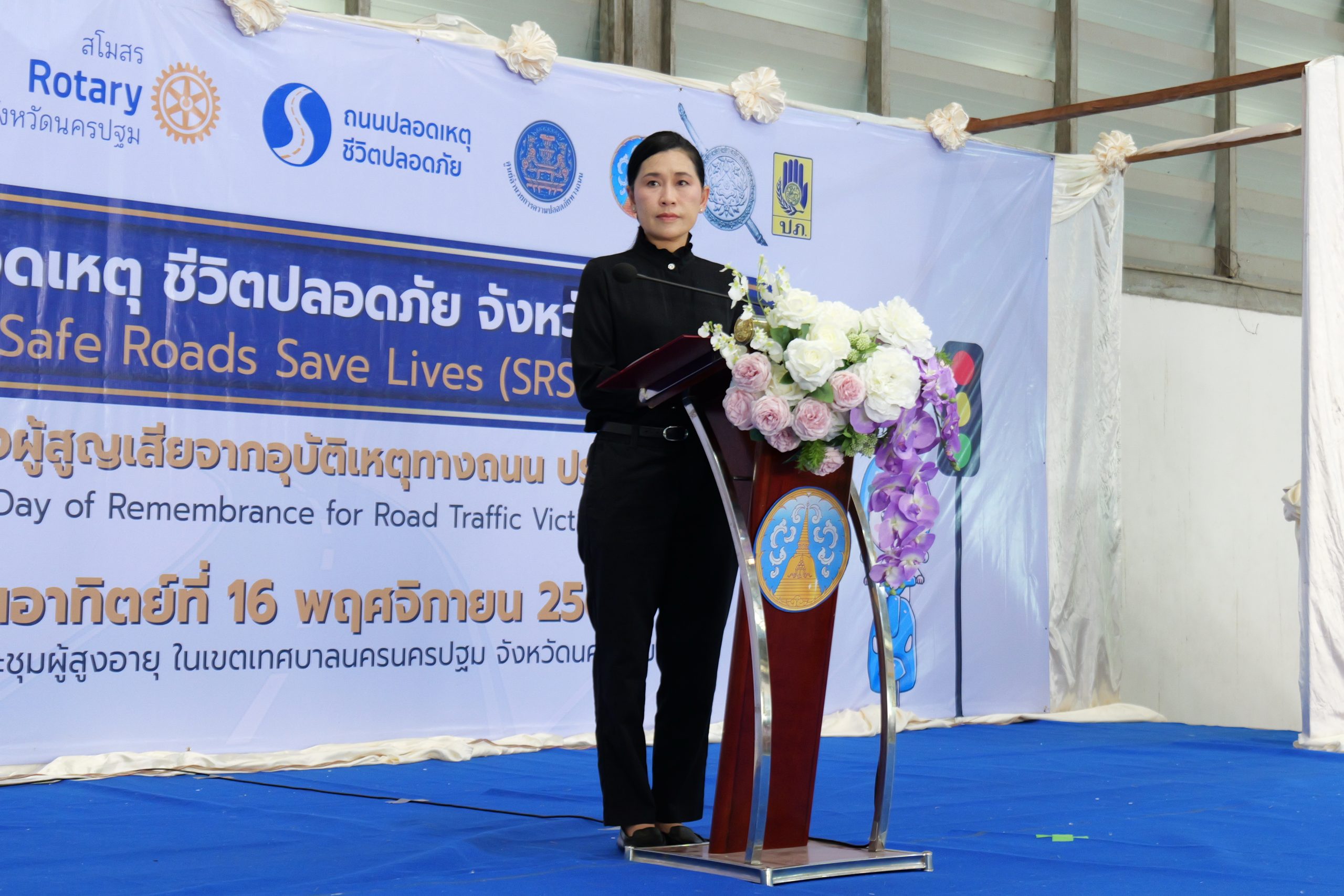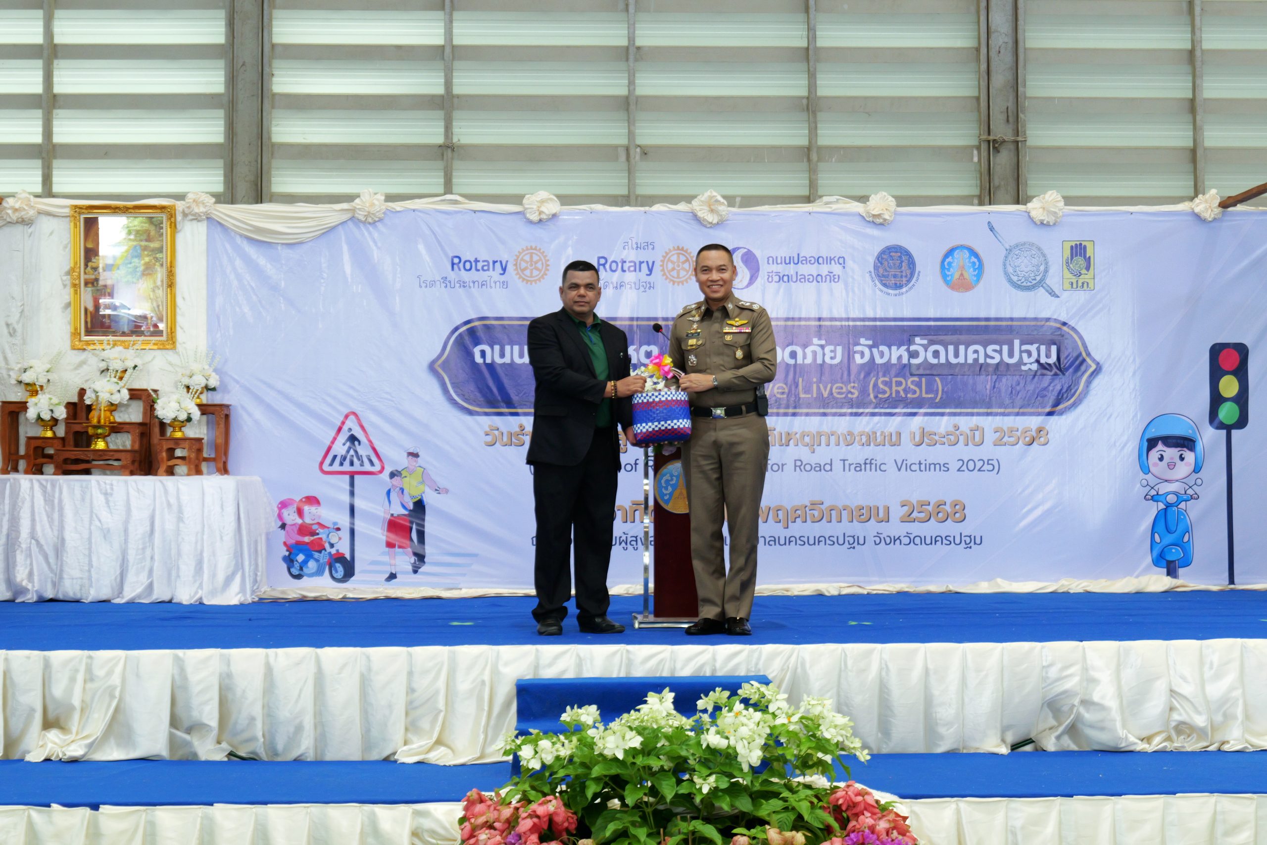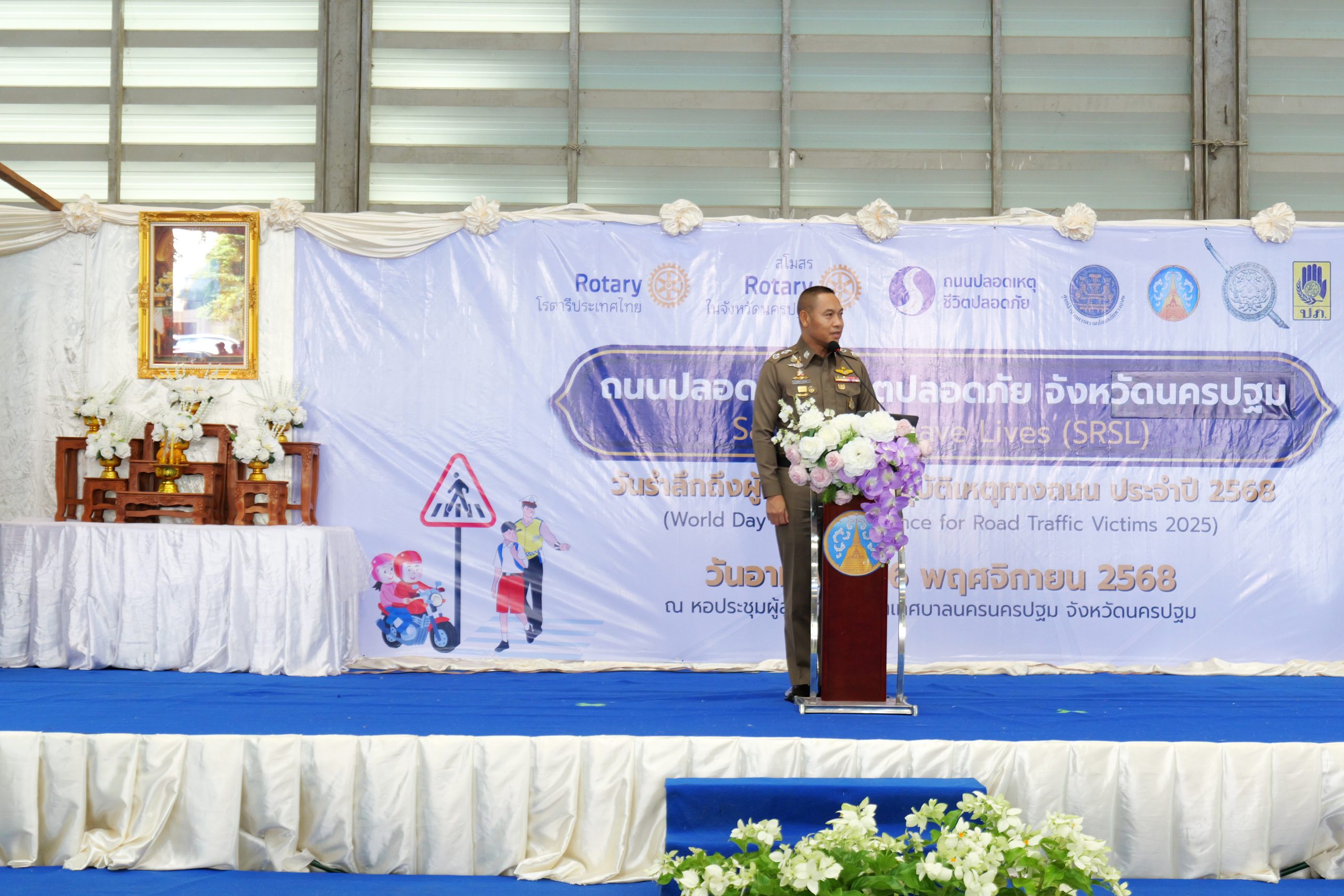 ได้รับเกียรติจาก นางสาวอโรชา นันทมนตรี ผู้ว่าราชการจังหวัดนครปฐม เป็นประธานกล่าวเปิดโครงการ และ นายกรับเลือก เอกรินทร์ มูสิแก้ว สโมสรโรตารีนครชัยศรีประธานจัดงาน โครงการถนนปลอดเหตุ ชีวิตปลอดภัย จังหวัดนครปฐม กล่าวรายงาน และวัตถุประสงค์การจัดงาน พร้อมด้วย พ.ท.สินธพ แก้วพิจิตร สมาชิกสภาผู้แทนราษฎร จังหวัดนครปฐม เขต 2 ,ผู้ว่าการภาค3330 โรตารีสากล ,ผู้ว่าการภาครับเลือก ,อดีตผู้ว่าการภาค นายกสโมสรโรตารีในพื้นที่จังหวัดนครปฐมทั้ง 12 แห่ง หัวหน้าส่วนราชการ คณะกรรมการศูนย์อำนวยการความปลอดภัยทางถนนจังหวัดนครปฐม ภาคีเครือข่ายด้านความปลอดภัยทางถนนในพื้นที่จังหวัดนครปฐม, สาธารณสุขจังหวัดนครปฐม, กต.ตร. และตำรวจภูธรจังหวัดนครปฐม ร่วมพิธี