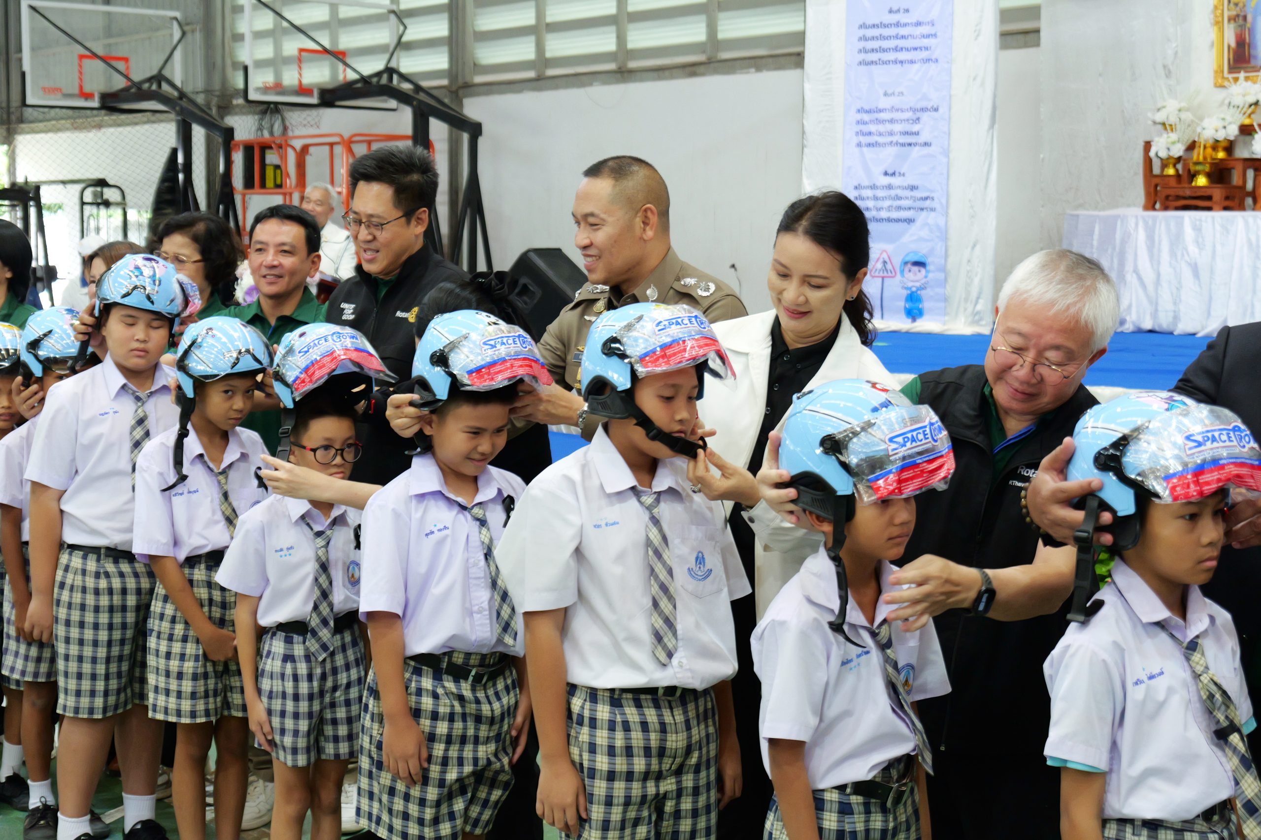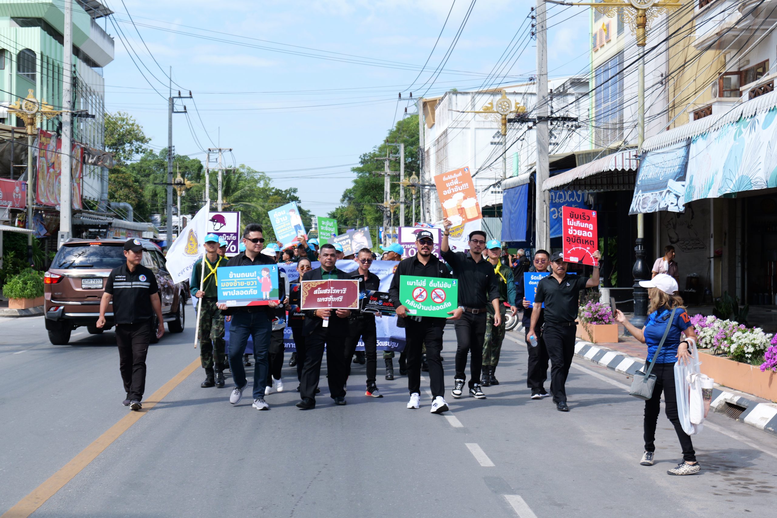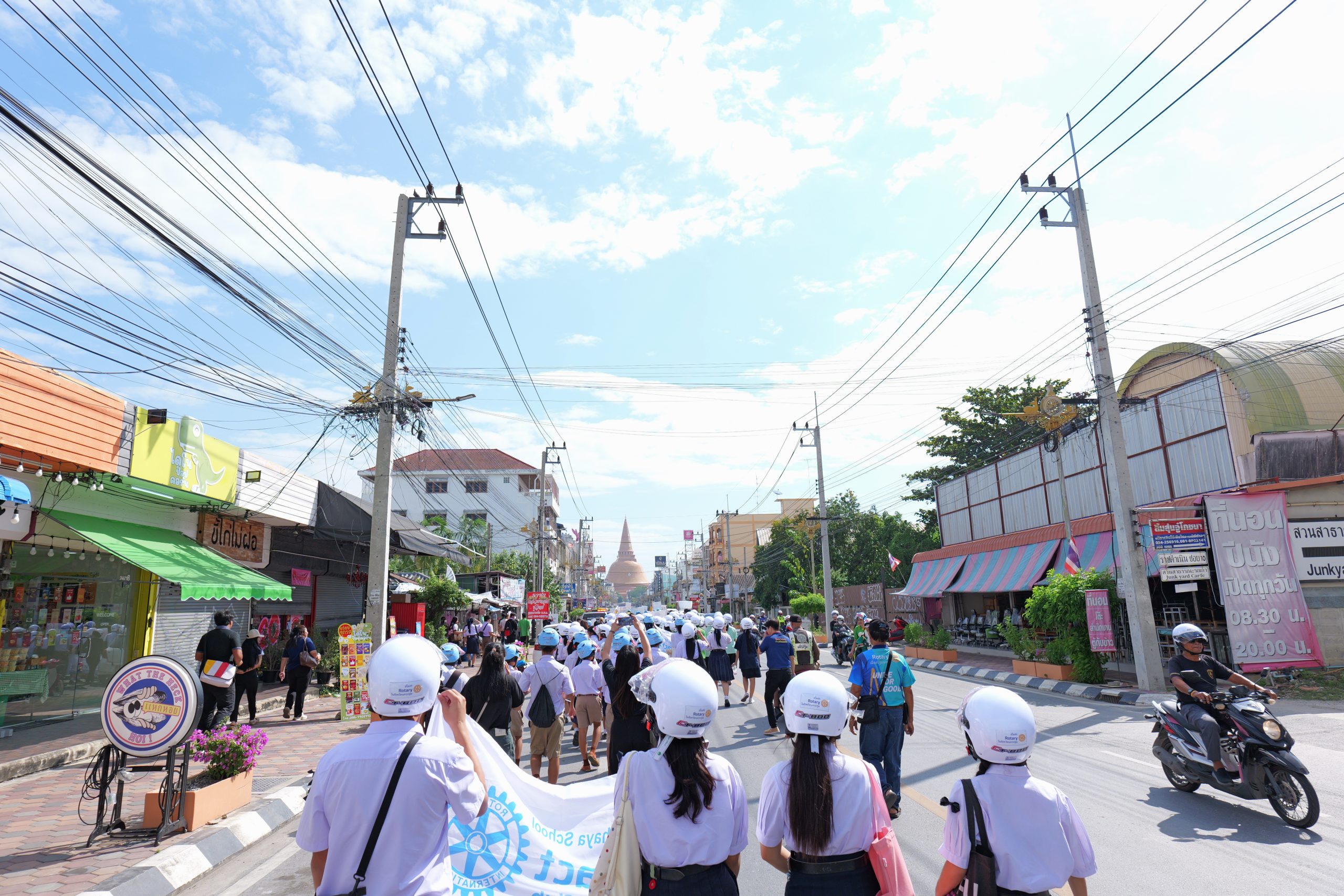 ในการนี้ สโมสรโรตารีทั้ง 12 แห่งในจังหวัดนครปฐม ได้ร่วมกันจัดเตรียม หมวกนิรภัยจำนวน 877 ใบเพื่อมอบให้กับเยาวชน นักเรียน นักศึกษา และประชาชนในพื้นที่รวมทั้งจัดกิจกรรมเดินรณรงค์สร้างวัฒนธรรมความปลอดภัยและการบรรยายให้ความรู้โดยหน่วยงานด้านความปลอดภัยทางถนน