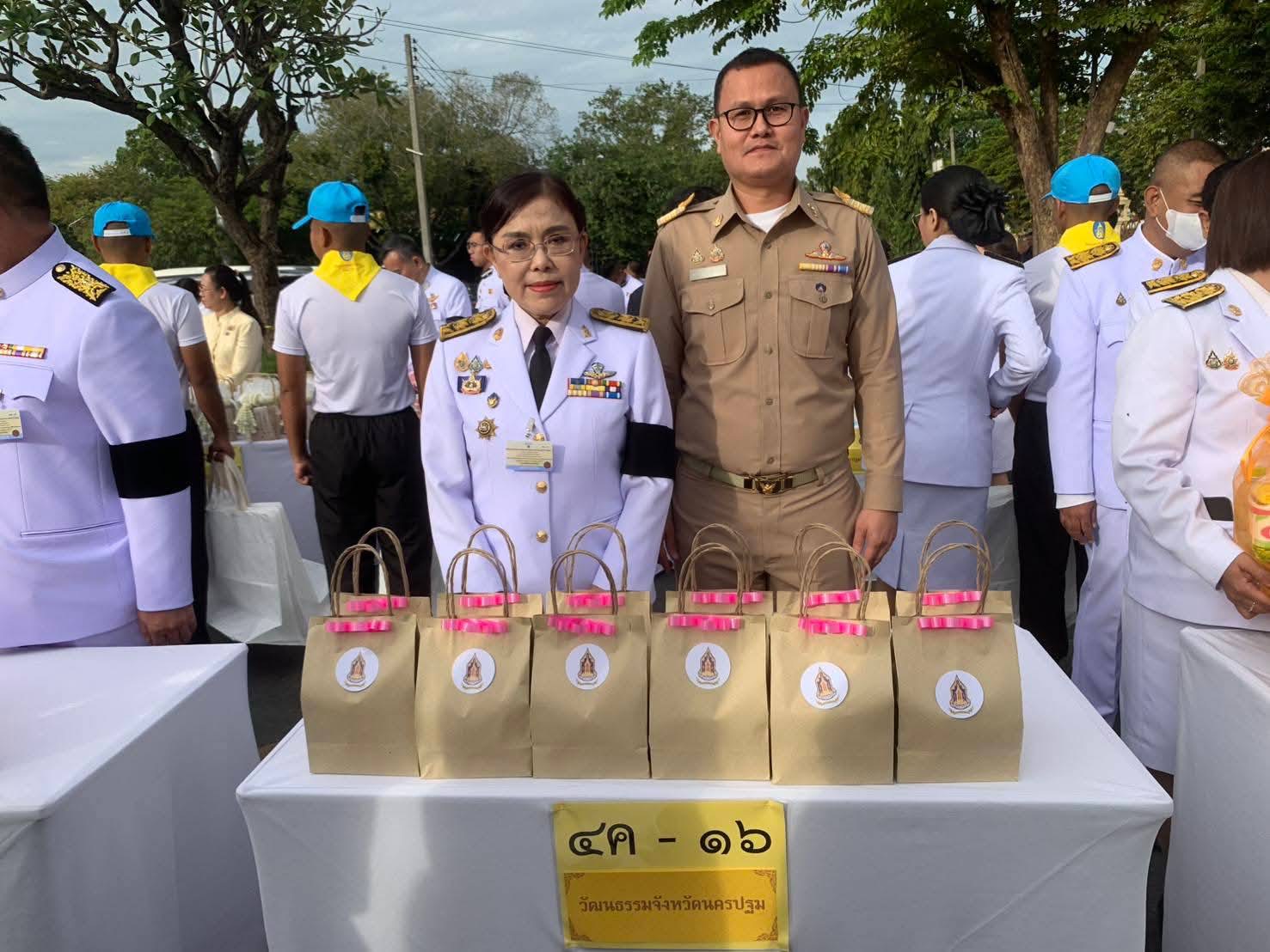 ในการนี้ นางฐิติรัตน์ เรืองสังข์ วัฒนธรรมจังหวัดนครปฐม มอบหมายให้ นางสาวอรพร คัมภีรศาสตร์ ผู้อำนวยการกลุ่มส่งเสริมศาสนา ศิลปะ และวัฒนธรรม นายธรปพล วานิชานนท์ หัวหน้าฝ่ายบริหารทั่วไป ข้าราชการ และเจ้าหน้าที่กลุ่มพิธีการศพที่ได้รับพระราชทาน ร่วมอำนวยความสะดวกพระสงฆ์ในพิธี เจริญพระพุทธมนต์ และที่มารับบิณฑบาต