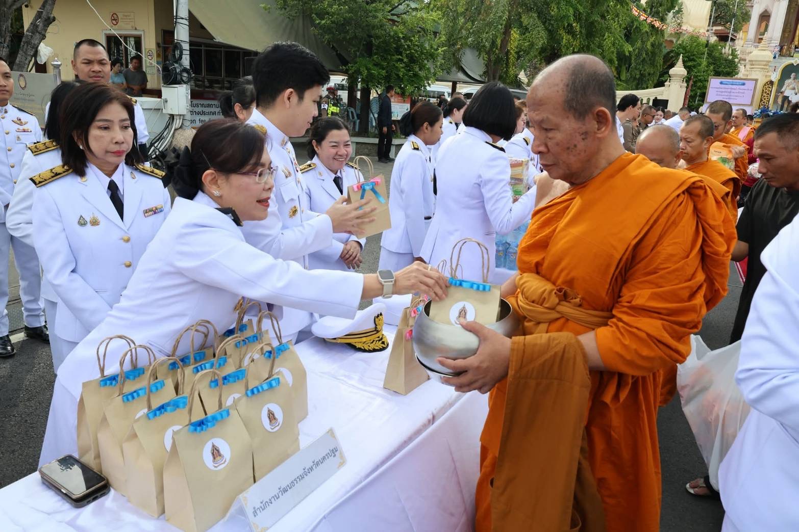 ในการนี้ นางฐิติรัตน์ เรืองสังข์ วัฒนธรรมจังหวัดนครปฐมมอบหมายให้ข้าราชการ และเจ้าหน้าที่กลุ่มพิธีการศพ ที่ได้รับพระราชทาน ร่วมปฏิบัติงานศาสนพิธีให้ดำเนินไปด้วยความเรียบร้อย และสมพระเกียรติ