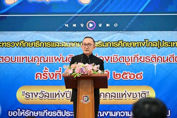 ดร.สันติ พิมพ์ใจใส ผู้อำนวยการโครงการตอบแทนคุณแผ่นดินยกย่องเชิดชูเกียรติ คนดีของสังคม ครั้งที่ 5 กล่าวว่า สมาคมเพื่อการศึกษาทางไกล ได้จัดพิธีมอบประกาศเกียรติคุณและโล่เชิดชูเกียรติคนดีของสังคม “ปูชนียบุคคล” บุคคลแห่งชาติ” 2568 ครั้งที่ 5 ขึ้นเพื่อเป็นการยกย่องเชิดชูเกียรติให้กับคณะผู้บริหาร เจ้าหน้าที่ บุคลากรในสมาคมเพื่อการศึกษาทางไกล รวมทั้งยกย่องเชิดชูเกียรติให้กับบุคลากรหน่วยงานของรัฐและเอกชน ที่เสียสละอุทิศตนเพื่อสังคมและประเทศชาติ ตลอดจนยกย่องเชิดชูเกียรติแก่นักศึกษาและเยาวชน ผู้ที่ประพฤติตนเป็นคนดีและเป็นแบบอย่างที่ดีแก่สังคม