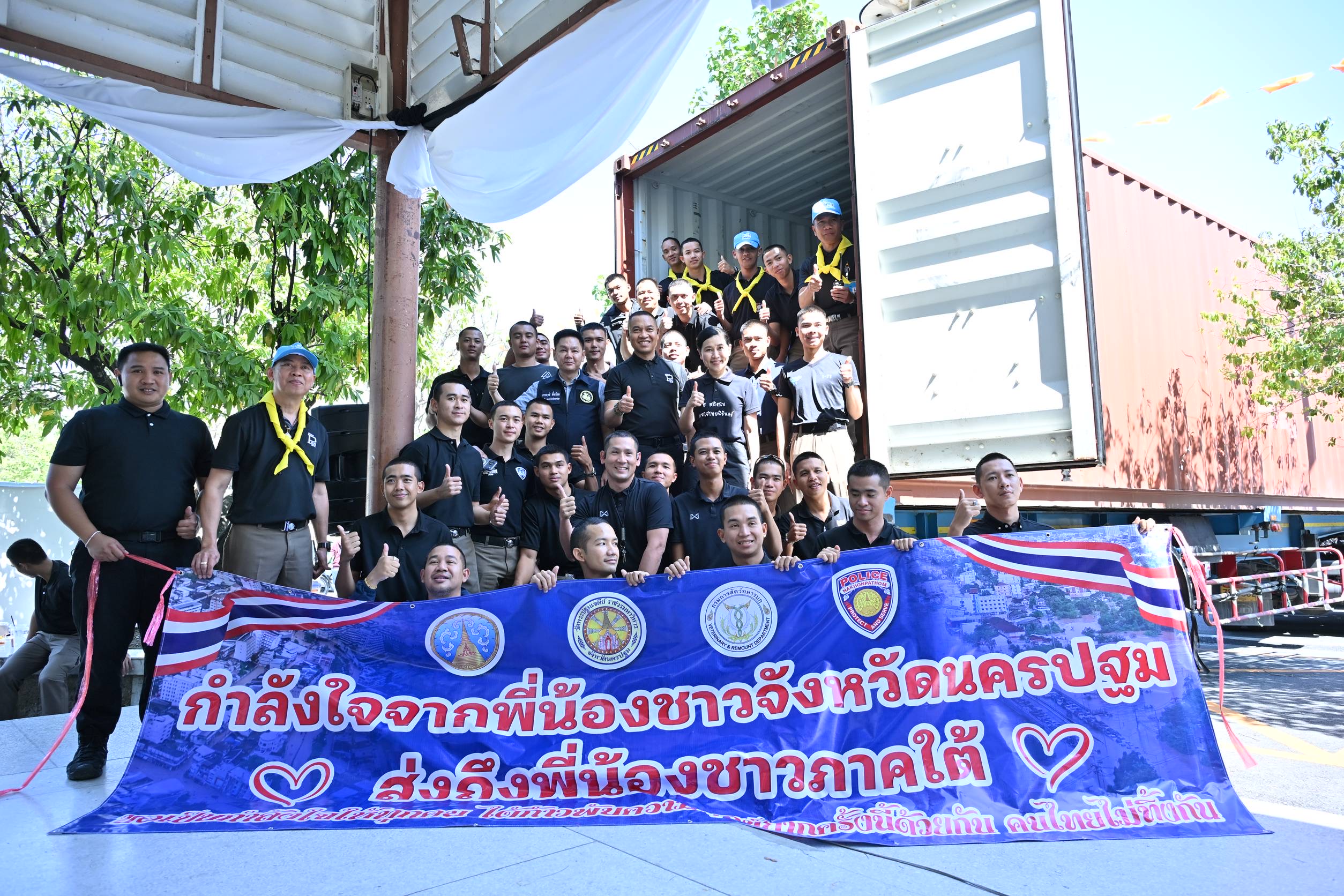 ซึ่งจังหวัดนครปฐมร่วมกับคณะสงฆ์ วัดพระปฐมเจดีย์ ราชวรมหาวิหาร หน่วยงานภาคีเครือข่าย ภาครัฐ ภาคเอกชน และประชาชนชาวนครปฐมรวมใจส่งมอบถุงยังชีพ จำนวน 2,000 ชุด ขึ้นรถบรรทุกเทเลอร์ และรถบรรทุก 6 ล้อ ซึ่งเป็นธารน้ำใจจากชาวนครปฐม จำนวน 2 คัน ออกเดินทางวันที่ 30 พ.ย. 68 ปลายทาง 2 จุด ได้แก่ วัดป่าก่อสุวรรณาราม อ.นาหม่อม จ.สงขลา และศาลากลางจังหวัดสงขลา รวมทั้งสิ้นจำนวน 2,000 ชุด