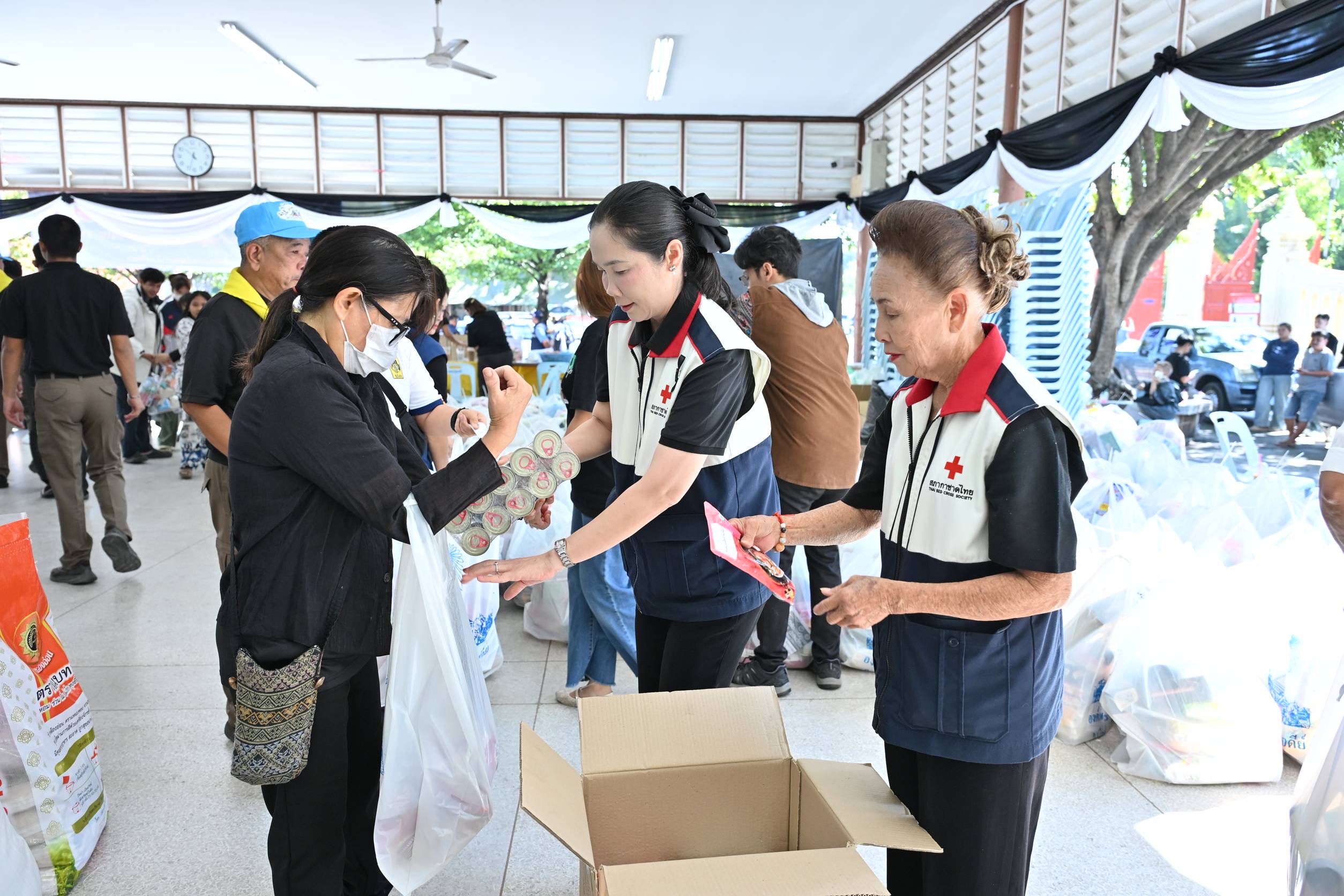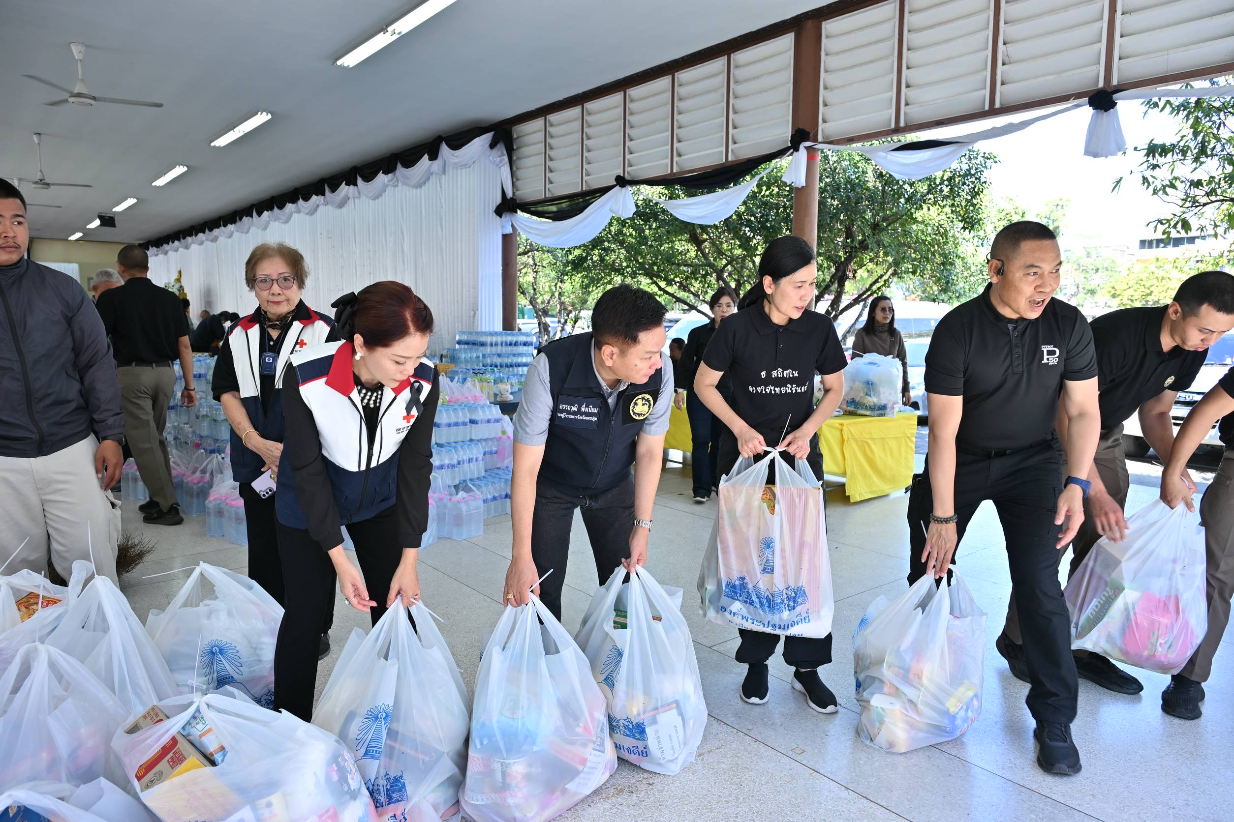 วันที่ 30 พฤศจิกายน 2568 ที่ศาลากองอำนวยการองค์พระปฐมเจดีย์ อ.เมือง จ.นครปฐม นางสาวอโรชา นันทมนตรี ผู้ว่าราชการจังหวัดนครปฐม พร้อมด้วย นายอรรถวุฒิ พึ่งเนียม รองผู้ว่าราชการจังหวัด พลตำรวจตรีพิทักษ์ อุปพงษ์ ผู้บังคับการตำรวจภูธรจังหวัด รองนายกเหล่ากาชาดจังหวัด คณะกรรมการและสมาชิกของกาชาด ข้าราชการและเจ้าหน้าที่ พี่น้องประชาชน นักเรียน นิสิตนักศึกษา มหาวิทยาลัยศิลปากร วิทยาเขตพระราชวังสนามจันทร์ เจ้าหน้าที่ทหารกรมการสัตว์ทหารบก ตำรวจภูธรเมืองนครปฐม และจิตอาสา ร่วมกันบรรจุสิ่งของจำเป็น อาทิ และน้ำดื่ม ยาสามัญ อาหารแห้ง อาหารสัตว์ ผ้าอนามัย นม ผ้าห่ม และอื่นๆมากมาย