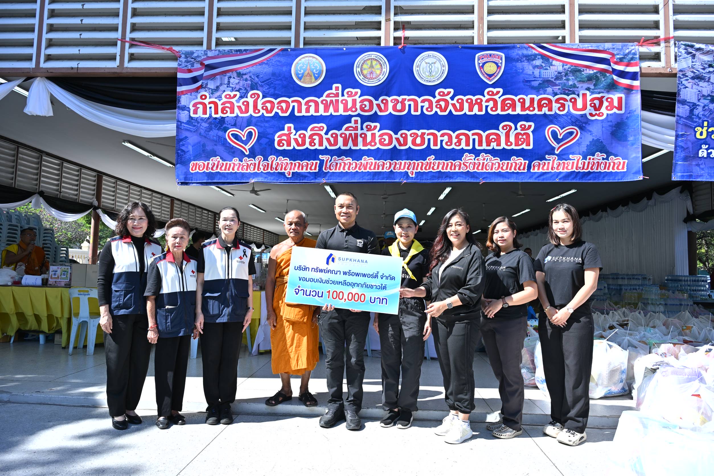จังหวัดนครปฐมร่วมกับคณะสงฆ์ วัดพระปฐมเจดีย์ ราชวรมหาวิหาร หน่วยงานภาคีเครือข่าย ภาครัฐ ภาคเอกชน และประชาชนชาวนครปฐม รวมใจส่งมอบถุงยังชีพ จำนวน 2,000 ชุด เพื่อช่วยเหลือผู้ประสบอุทกภัยรุนแรง ในพื้นที่ภาคใต้ รอบที่ 2