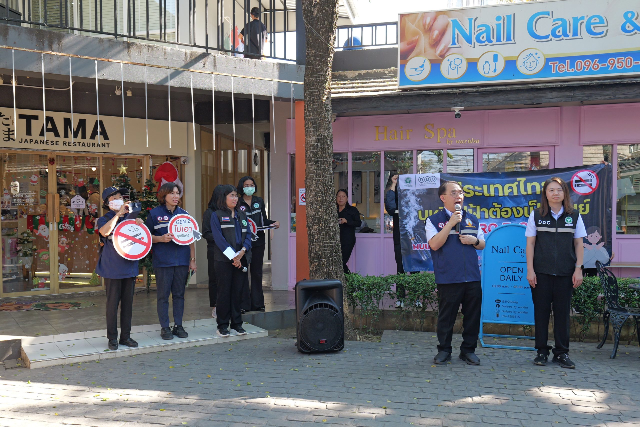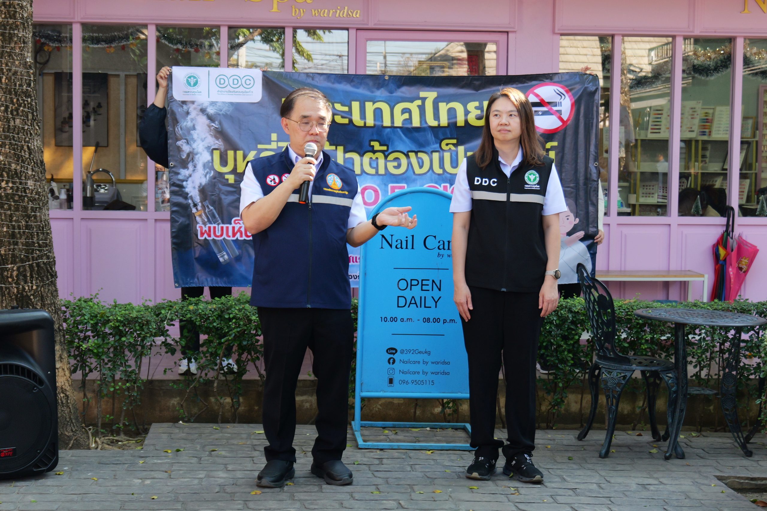 วันอังคารที่ 3 ธันวาคม 2568 อำเภอเมือง จังหวัดนครปฐม เวลา 14.00 น. สำนักงานป้องกันควบคุมโรคที่ 5 จังหวัดราชบุรี ร่วมกับจังหวัดนครปฐม และสำนักงานสาธารณสุขจังหวัดนครปฐม ดำเนินการลงพื้นที่เฝ้าระวังและตรวจสอบร้านค้า เพื่อป้องกันการแพร่ระบาดของบุหรี่ไฟฟ้า ตามแผน “ประเทศไทยบุหรี่ไฟฟ้าต้องเป็นศูนย์ : Zero E-Cig” มุ่งคุ้มครองเยาวชนและลดการเข้าถึงบุหรี่ไฟฟ้าในพื้นที่รอบสถานศึกษา นพ.วิโรจน์ รัตนอมรสกุล นายแพทย์สาธารณสุขจังหวัดนครปฐม และ แพทย์หญิงปทุมมาลย์ ศิลาพร ผู้อำนวยการสำนักงานป้องกันควบคุมโรคที่ 5 จังหวัดราชบุรี, เครือข่ายสื่อมวลชน ลงพื้นที่ร่วมตรวจสอบจริง
