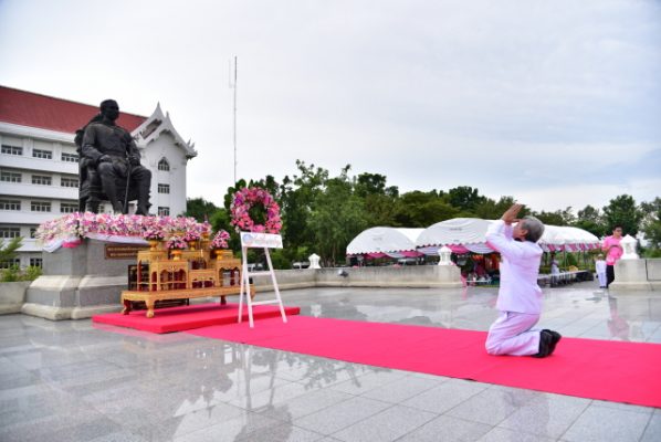 จากนั้น ผู้ว่าราชการจังหวัดนครปฐม เป็นประธานพิธีวางพวงมาลาและถวายบังคม เบื้องหน้าพระบรมพระบรมราชานุสาวรีย์พระบาทสมเด็จพระจุลจอมเกล้าเจ้าอยู่หัว โดยมีหัวหน้าส่วนราชการ ข้าราชการ ทหาร ตำรวจ และเจ้าหน้าที่จากหน่วยงานต่างๆ ตลอดจนองค์กรภาคเอกชน นักเรียน นักศึกษา และประชาชนทุกหมู่เหล่า ร่วมพิธีเป็นจำนวนมาก เพื่อแสดงความจงรักภักดี และน้อมรำลึกในพระมหากรุณาธิคุณของพระบาทสมเด็จพระจุลจอมเกล้าเจ้าอยู่หัว ที่พระองค์ทรงบำเพ็ญพระราชกรณียกิจด้วยพระปรีชาสามารถต่อการพัฒนาประเทศให้เจริญก้าวหน้า ทรงประกาศยกเลิกระบบทาส เพื่อให้ประชาชนได้เป็นอิสระ อีกทั้งทั้งด้านการปกครอง การบริหารราชการแผ่นดิน การศึกษา การสาธารณสุข ตลอดจนสาธารณูปการต่างๆ ทำให้ประเทศไทยมีความเจริญก้าวหน้าและรักษาความเป็นเอกราชมาได้จนถึงทุกวันนี้