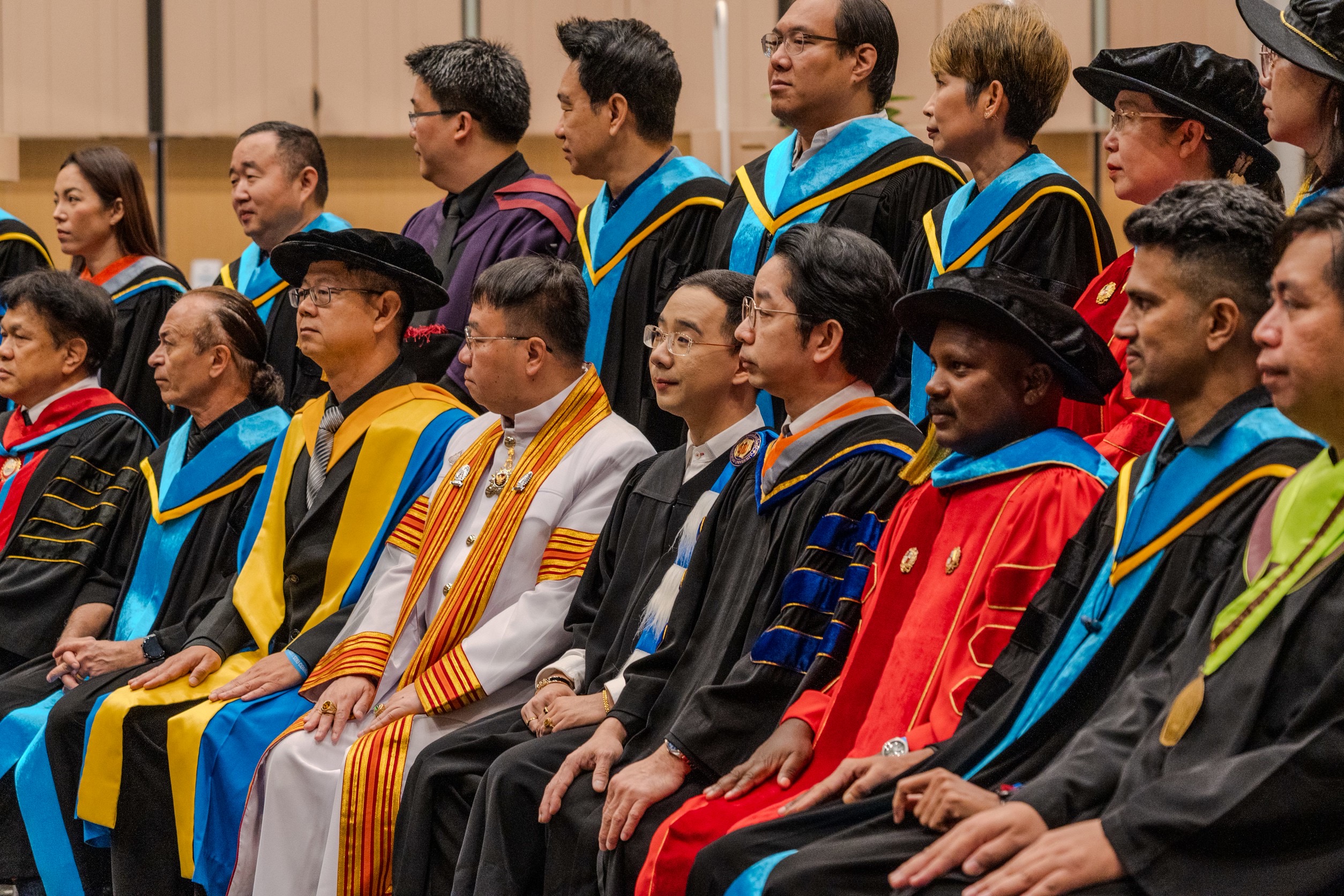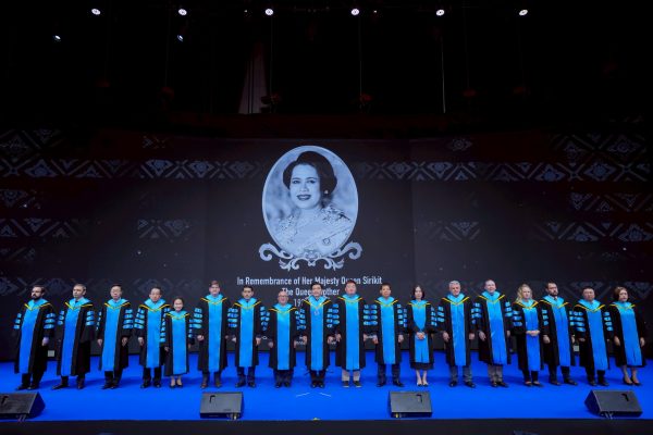 พิธีการสำคัญเริ่มต้นด้วยการถวายความอาลัยแด่สมเด็จพระนางเจ้าสิริกิติ์ พระบรมราชินีนาถ พระบรมราชชนนีพันปีหลวง โดย ดร. อภิเทพ แซ่โค้ว (รักษาการอธิการบดีมหาวิทยาลัย) ได้นำคณะทูตประจำประเทศไทย คณะกรรมการสภามหาวิทยาลัย ผู้ทรงคุณวุฒิ คณาจารย์ ศิษย์เก่า และบัณฑิตทุกระดับชั้นร่วมแสดงความอาลัย พร้อมกล่าวน้อมรำลึกถึงพระราชกรณียกิจด้านการส่งเสริมการศึกษา การพัฒนาคุณภาพชีวิต และการสร้างความร่วมมือกับนานาประเทศ ซึ่งเป็นแรงบันดาลใจสำคัญต่อการขับเคลื่อนพันธกิจของมหาวิทยาลัยในการมุ่งมั่นพัฒนาการศึกษาและสร้างความร่วมมือระดับสากล