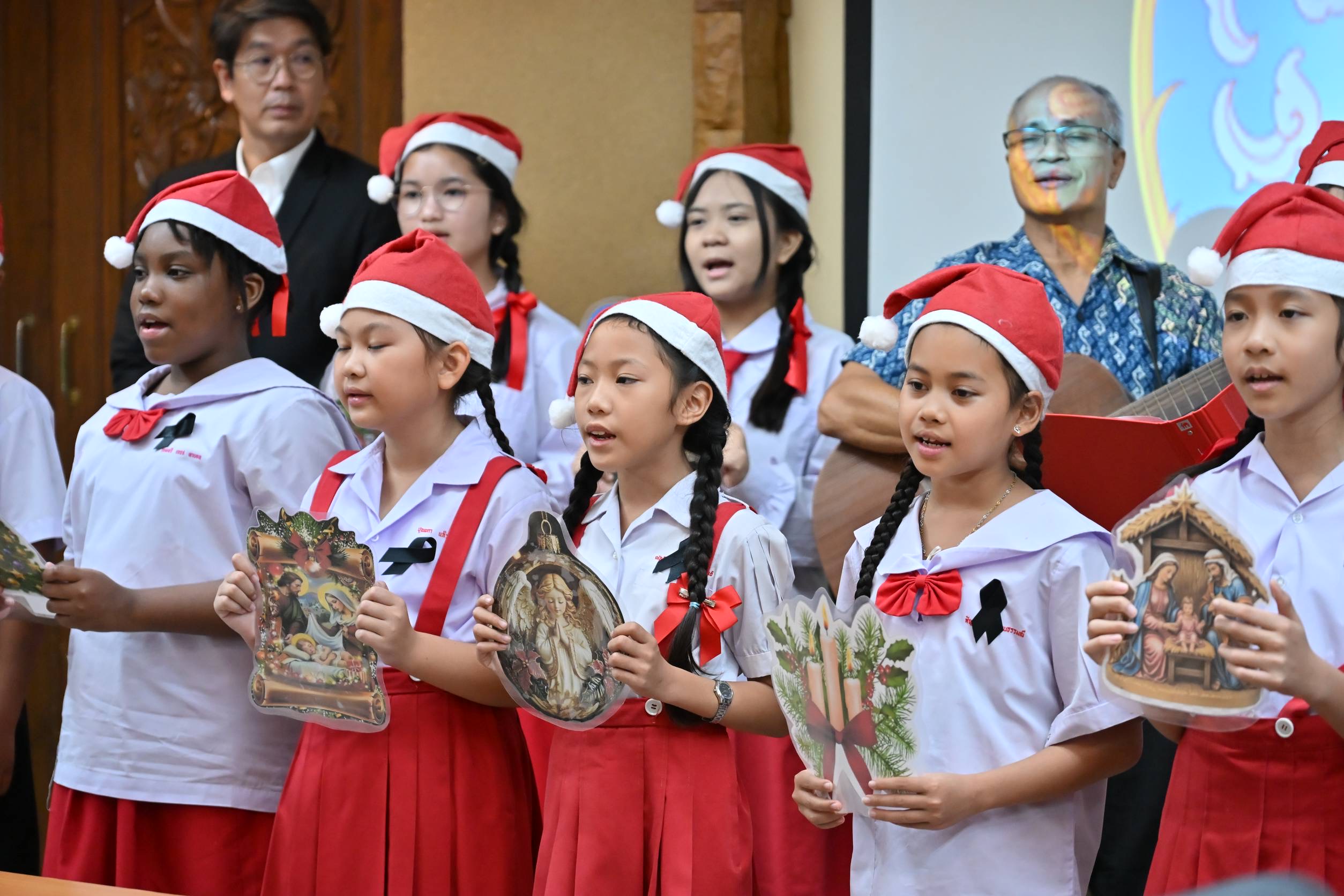 โอกาสนี้ นายอรรถวุฒิ พึ่งเนียม รองผู้ว่าราชการจังหวัดนครปฐม ให้กล่าวให้โอวาท และขอบคุณคณะผู้บริหาร ครู และนักเรียน ที่มาอวยพรเนื่องในเทศกาลคริสต์มาสครั้งนี้