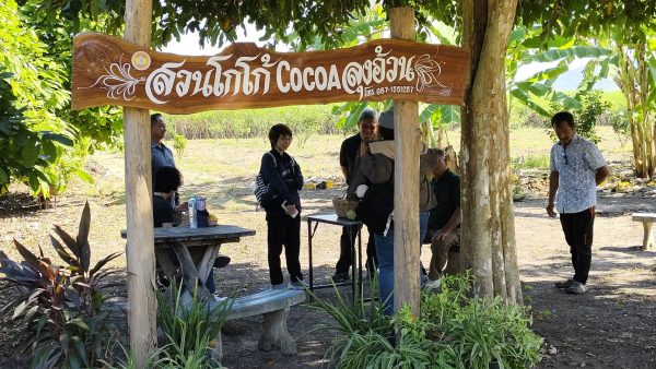 ขณะที่ พี่นภาลักษณ์ รัตนพงศ์ปกรณ์ ภรรยาของลุงอ้วน เล่าว่า การปลูกโกโก้ ได้ผลผลิตในช่วง 3 ปีแรกขายผลสดโดยต้องไปขายที่เชียงใหม่ได้กิโลกรัมละ 8 บาทรวมเป็นเงิน 300 ร้อยบาท ปีต่อมาผลผลิตเริ่มเยอะขึ้นไม่สามารถส่งไปขายที่เชียงใหม่ได้จึงต้องศึกษาวิธีการแปรรูปเข้ารับการอบรมต่างๆเพื่อเรียนรู้กระบวนการแปรรูปโกโก้เพื่อสร้างมูลค่าเพิ่ม อีกทั้งได้รับความรู้จากอาจารย์แผนกอุตสาหกรรม วิทยาลัยเกษตรและเทคโนโลยีสุพรรณบุรี มาถ่ายทอดองค์ความรู้และให้คำแนะอย่างต่อเนื่อง ตั้งแต่การหมัก