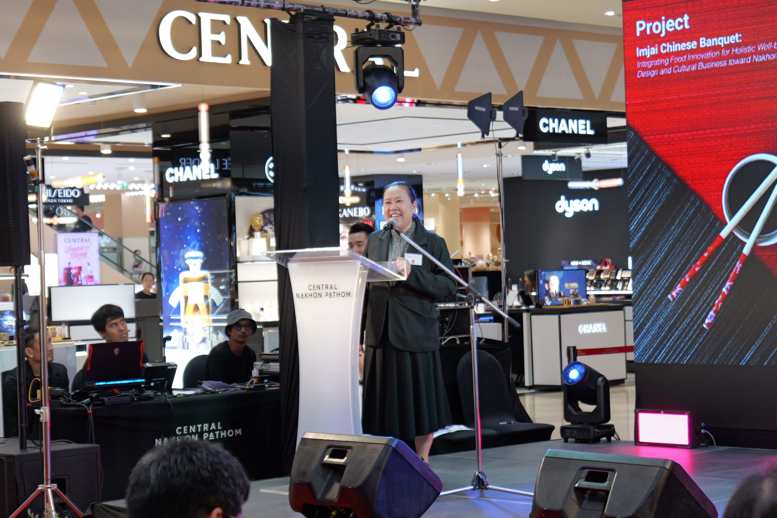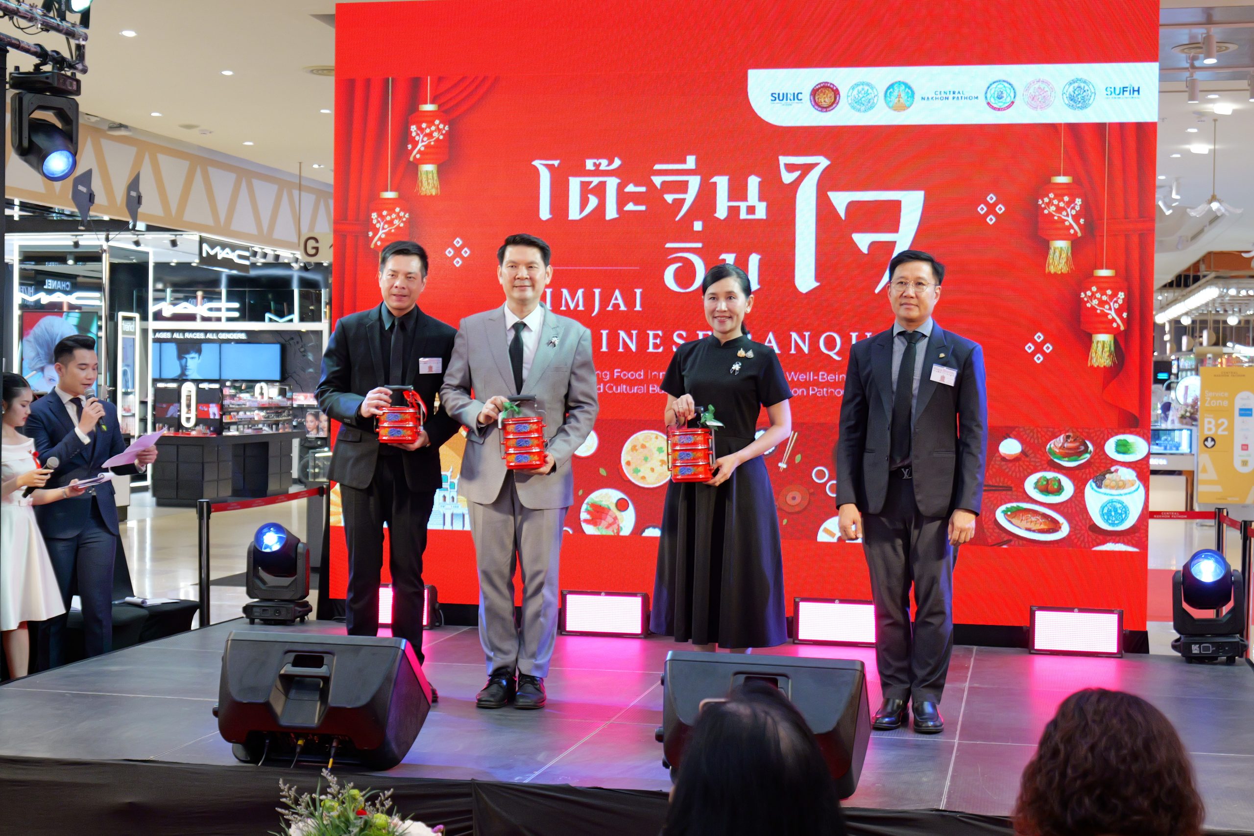 โดยการแถลงข่าวเปิดตัวโครงการ “โต๊ะจีนอิ่มใจ:บูรณาการนวัตกรรมอาหารสุขภาวะองค์รวมขับเคลื่อนด้วยการออกแบบและธุรกิจเชิงวัฒนธรรม สู่ซอฟต์พาวเวอร์นครปฐม” ได้รับการสนับสนุนด้านสถานที่และประชาสัมพันธ์ รวมถึงอำนวยความสะดวกด้านต่าง ๆ เพื่อการจัดงานในครั้งนี้ จากศูนย์การค้าเซ็นทรัล จังหวัดนครปฐม