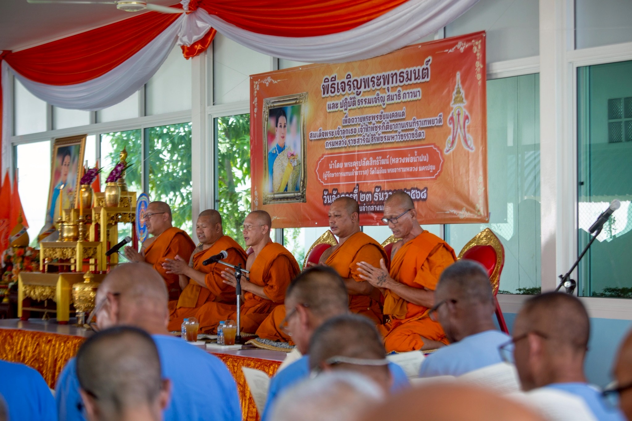 โดยพิธีเริ่มโดย บัญชาการเรือนจำกลางนครปฐม จุดธูปเทียนบูชาพระรัตนตรัย เปิดกรวยดอกไม้ธูปเทียนแพ ถวายราชสักการะเบื้องหน้าพระรูปสมเด็จพระเจ้าลูกเธอ เจ้าฟ้าพัชรกิติยาภา นเรนทิราเทพยวดี กรมหลวงราชสาริณีสิริพัชร มหาวัชรราชธิดา จากนั้นคณะสงฆ์ จำนวน 5 รูป เจริญพระพุทธมนต์เพื่อความเป็นสิริมงคล ก่อนผู้บัญชาการเรือนจำกลางนครปฐม พร้อมด้วยหัวหน้าส่วน จะถวายไทยธรรมแด่พระสงฆ์ จากนั้น พระครูปลัดสิทธิวัฒน์ (หลวงพี่น้ำฝน) ผู้รักษาการแทนเจ้าอาวาสวัดไผ่ล้อมพระอารามหลวงนำการกำหนดจิตเจริญสมาธิภาวนา และพระสงฆ์ได้อนุโมทนา กรวดน้ำ และให้พร เป็นอันเสร็จพิธี
