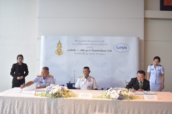 โดยมีพลเรือตรีวรพล ทองปรีชาผู้อำนวยการสำนักงานวิจัยและพัฒนาการทางทหารกองทัพเรือ ลงนามความร่วมมือกับ นายเจษฎา สุภาภา กรรมการผู้จัดการบริษัทสุภาภาอินเตอร์เนชั่นแนลจำกัด ซึ่งมีนายชัยรัตน์ ตระกูลรังสี ผู้จัดการทั่วไปบริษัทสุภาภาอินเตอร์เนชั่นแนล จำกัด กล่าวความเป็นมาและวัตถุประสงค์ในการจัดทำบันทึกความร่วมมือ เพื่อพัฒนางานวิจัยในการพัฒนาอุปกรณ์และยุทธโธปกรณ์ทางการทหาร