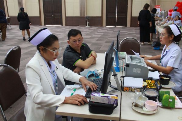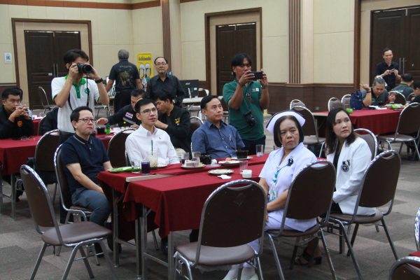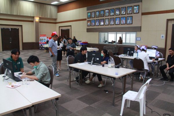 ทั้งนี้ ก่อนการเปิดงาน ตั้งแต่เวลา 07.30 น. คณะสื่อมวลชนทั้งหมดได้เดินทางมาลงทะเบียน เพื่อเข้ารับการเจาะเลือด ตรวจปัสสาวะ เอกซเรย์ทรวงอก ภายหลังจากได้งดอาหารมาตั้งเมื่อวานตั้งแต่เวลา 20.00 น. ที่บริเวณชั้น 1 อาคารอนุสรณ์ 36 ปี จากนั้นได้ขึ้นไปร่วมเปิดงาน ที่ห้องประชุมชั้น 5 โดยทางโรงพยาบาลได้จัดเตรียมอาหารเช้า เครื่องดื่ม ไว้คอยต้อนรับอย่างอบอุ่นเป็นอย่างดี ซึ่งมี ผู้อำนวยการโรงพยาบาลฯ คณะผู้บริหาร หัวหน้ากลุ่มงาน เจ้าหน้าที่ ได้พบปะพูดคุย แนะนำตัวกับสื่อมวลชน พร้อมแลกเปลี่ยนความคิดเห็นระหว่างผู้บริหารโรงพยาบาลกับสื่อมวลชน เพื่อนำข้อเสนอแนะไปใช้ในการพัฒนาปรับปรุงคุณภาพการให้บริการแก่ประชาชน สร้างความเป็นกันเองอย่างชื่นมื่น โดยทั้งนี้ในช่วงรอผลเลือดจากห้องแล็ป ได้มีการตรวจคัดกรองสายตาจากจักษุแพทย์ ที่บริเวณคลินิกตา ชั้น 3 อีกด้วย