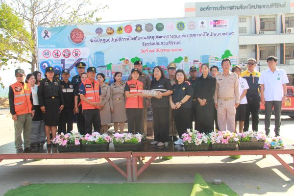 เมื่อเวลา 09.30 น. วันที่ 25 ธ.ค.68 ที่บริเวณหน้าศาลากลางจังหวัดประจวบคีรีขันธ์ นางอภิญญา เอี่ยมอำภา รองผู้ว่าราชการจังหวัดประจวบฯ เป็นประธานพิธีเปิดศูนย์ปฏิบัติการป้องกันและลดอุบัติเหตุทางถนนช่วงเทศกาลปีใหม่ 2569 จังหวัดประจวบฯ โดยมี นายธนวัฒน์ เรืองเดช หัวหน้าสำนักงานป้องกันแสะบรรเทาสาธารณภัย (ปภ.)จ.ประจวบฯ กล่าวรายงาน มี พล.ต.ต.อาทร ชิ้นทอง ผบก.ภ.จว.ประจวบฯ นายสุธี เล้าสุบินประเสริฐ ปลัดจังหวัดฯ นายวสันต์ เภรีวิค ผู้อำนวยการสำนักงานคุมประพฤติจังหวัดฯ/ยุติธรรมจังหวัด น.ส.สุทิพย์ ตนประเสริฐ ขนส่งจังหวัดฯ นพ.วัชรพงษ์ เหลืองไพรัตน์ ผู้อำนวยการ รพ.ประจวบฯ หัวหน้าส่วนราชการ ข้าราชการ ผู้แทนหน่วยงาน ทหารอากาศกองบิน 5 ทหารหน่วยเฉพาะกิจจงอางศึก ตำรวจภูธร ตำรวจ ตชด. องค์กรปกครองส่วนท้องถิ่น อาสาสมัครป้องกันภัยฝ่ายพลเรือน(อปพร.) อาสาสมัครรักษาดินแดน(อส.) เจ้าหน้าที่ตำรวจทางหลวง เจ้าหน้าที่แขวงทางหลวงชนบทฯ หมวดทางหลวงประจวบฯ เจ้าหน้าที่ขนส่งจังหวัดฯ เจ้าหน้าที่สำนักงานคุมประพฤติฯ คณาจารย์และนักศึกษาวิทยาลัยเทคนิคประจวบฯ อาสาหน่วยกู้ภัยตำรวจทางหลวงฯ อาสาสมัครกู้ภัยมูลนิธิสว่างประจวบฯ เจ้าหน้าที่ คปภ. บริษัทกลางคุ้มครองผู้ประสบภัยจากรถ จก. เครือข่ายงดเหล้าจังหวัดฯ สสส. เครือข่ายพลังหญิงอาสา เข้าร่วม