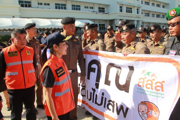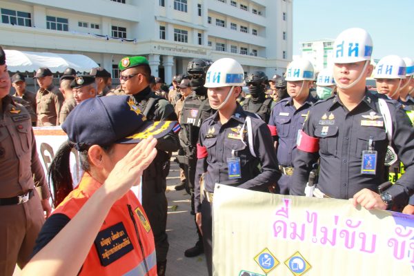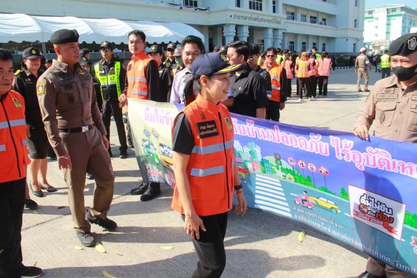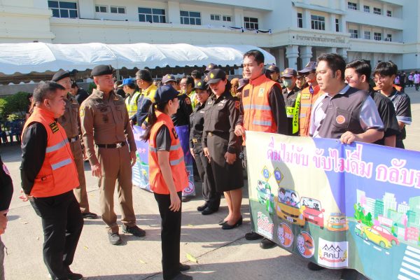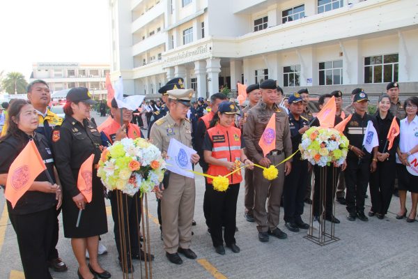 จากนั้น รองผู้ว่าราชการจังหวัดฯ พร้อมผู้เข้าร่วมทั้งหมด ได้ทำการปล่อยแถวขบวนรถยนต์ รถจักรยานยนต์ เพื่อรณรงค์ป้องกันและลดอุบัติเหตุทางถนน ขับขี่ปลอดภัยสวมใส่หมวกนิรภัยเวลาขับขี่รถ จยย. ที่บริเวณถนนด้านหน้าศาลากลางจังหวัดฯ