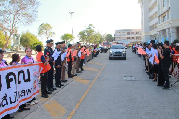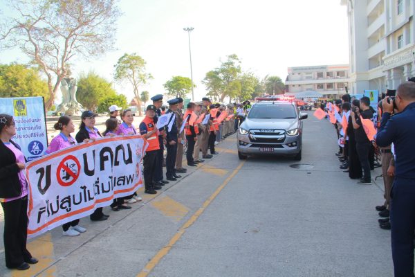 รองผู้ว่าฯ กล่าวต่อว่า วันนี้ได้รับความร่วมมือในการรณรงค์จากทุกหน่วยงาน ภายใต้มาตรการป้องกันและลดอุบัติเหตุทางถนนจังหวัดประจวบคีรีขันธ์ และการได้มาร่วมแสดงเจตนารมย์ร่วมกันเพื่อลดอุบัติเหตุ ลดคนเจ็บ ลดคนตาย ภายได้มาตรการที่เกี่ยวข้อง โดยเฉพาะมาตรการบังคับใช้กฎหมายที่มีกองบังคับการตำรวจภูธรจังหวัดฯ ขนส่งจังหวัดฯ เป็นต้น ที่ต้องควบคุมกำกับดูแลคนและยานพาหนะให้เป็นไปตามมาตรฐาน โดยมีหน่วยงานที่เกี่ยวข้องสนับสนุนการปฏิบัติงานทั้งการป้องกันการเกิดเหตุ การจัดการระหว่างเกิดเหตุและช่วยเหลือหลังเกิดเหตุย่างเป็นระบบ ขอขอบคุณทุกหน่วยงาน ทุกภาคส่วนทุกท่านที่มาร่วมรณรงค์ในวันนี้ ขอให้การปฏิบัติงานราบรื่นสำเร็จบรรลุเป้าหมายทุกประการ และขออำนวยพรให้ทุกท่านมีความสุขตลอดปีใหม่ 2569 และตลอดไป
