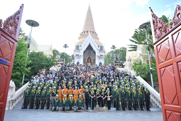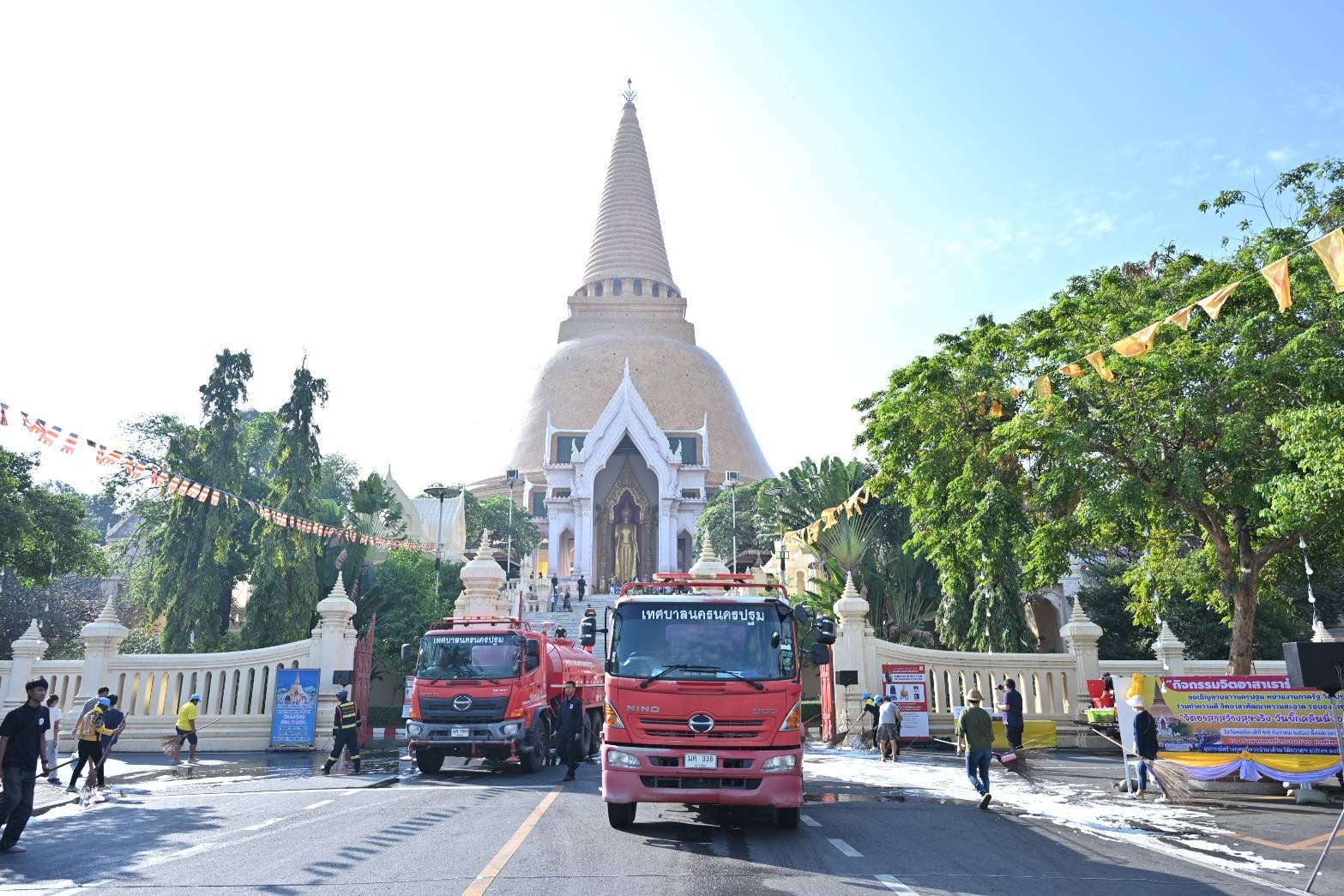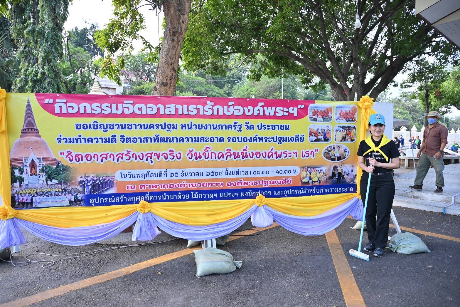 วันที่ 25 ธันวาคม 2568 นางสาวอโรชา นันทมนตรี ผู้ว่าราชการจังหวัดนครปฐม เป็นประธานเปิดกิจกรรมจิตอาสา “เรารักษ์องค์พระปฐมเจดีย์” ณ องค์พระปฐมเจดีย์ อำเภอเมืองนครปฐม จังหวัดนครปฐม โดยมี พระศรีวิสุทธิวงศ์ รองเจ้าคณะจังหวัดนครปฐม ผู้ช่วยเจ้าอาวาส วัดพระปฐมเจดีย์ ราชวรมหาวิหาร หัวหน้าส่วนราชการ องค์กรปกครองส่วนท้องถิ่น หน่วยงานรัฐวิสาหกิจ ภาคเอกชน นักเรียน นักศึกษา พุทธศาสนิกชน และประชาชนชาวนครปฐม เข้าร่วมกิจกรรม โดยร่วมทำความสะอาดบริเวณชั้นบนโดยรอบองค์พระปฐมเจดีย์ และภายในคตพระระเบียง