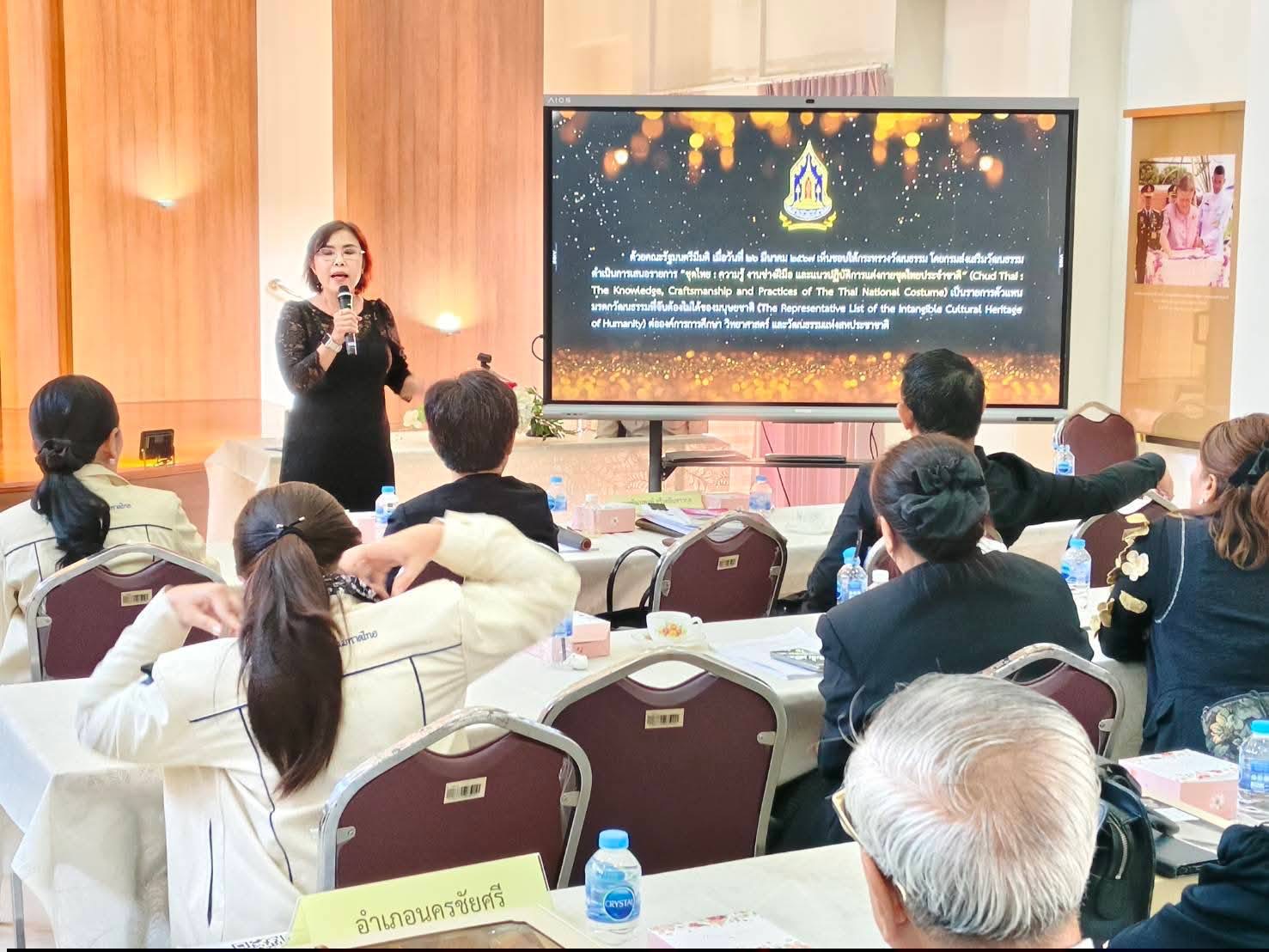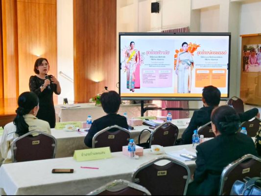 ในโอกาสนี้ นางฐิติรัตน์ เรืองสังข์ วัฒนธรรมจังหวัดนครปฐม ได้บรรยายเกี่ยวกับชุดไทย ซึ่งเป็นเครื่องแต่งกายประจำชาติที่สะท้อนเอกลักษณ์และความงดงามของไทย ผ่านการตัดเย็บประณีตและการใช้ผ้าไหมไทยอันทรงคุณค่า โดยแบ่งเป็นกลุ่มหลักคือ ชุดไทยพระราชนิยม 8 แบบ ที่ออกแบบมาสำหรับโอกาสต่างๆ คือ