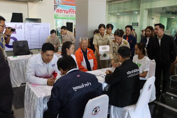 เวลา 06.45 น.วันที่ 27 ธ.ค.2568 ผู้สมัครจากพรรคเพื่อไทย นำโดย ดร.ประยูร อินสกุล พรรคเพื่อไทย อดีตปลัดกระทรวงเกษตรและสหกรณ์ พรรคเพื่อไทย ผู้สมัคร เขต 1 นายชัยพร สีถัน พรรคเพื่อไทย นักธุรกิจ ชาวอำเภอบางปลาม้า เขต 2 ดร.กุลธิดา เหมาเพชรอนันเมฆ พรรคเพื่อไทย เขต 3 นางสาววิรธิดา โกยชัย พรรคเพื่อไทย เขต 4และนายภานรินทร์ อินสกุล พรรคเพื่อไทย ลูกชายอดีตปลัดกระทรวงเกษตรและสหกรณ์ เขต 5 มาลงทะเบียนก่อน