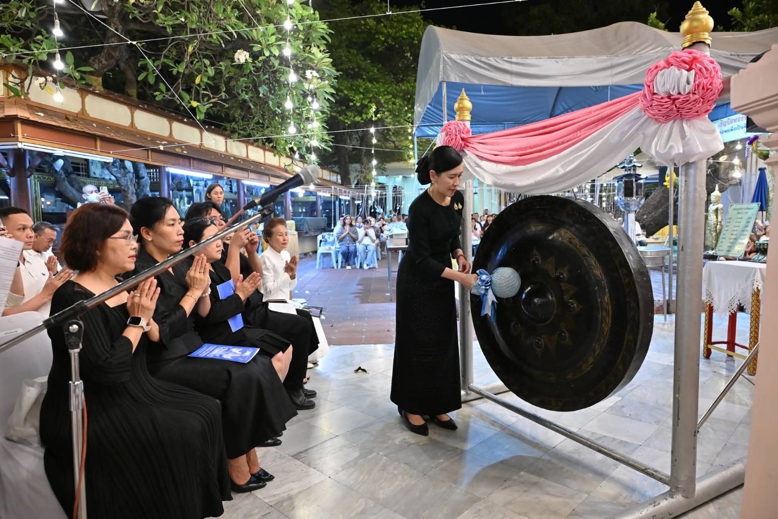 โอกาสนี้ พระธรรมวชิรเจติยาจารย์ ได้กล่าวสัมโมทนียกถา เนื่องในวาระดิถีขึ้นปีใหม่ หลังจากนั้นผู้ว่าราชการจังหวัดนครปฐม ลั่นฆ้องชัย 9 ครั้ง และกล่าวอำนวยพรปีใหม่ พุทธศักราช 2569 แก่พี่น้องประชาชนชาวจังหวัดนครปฐม รวมทั้งหน่วยงานภาครัฐ ภาคเอกชน ภาคประชาสังคม ทุกภาคส่วนและทุกสาขาอาชีพ ซึ่งตลอดปีที่ผ่านมาได้ให้ความร่วมมือและเข้ามาร่วมคิดร่วมทำ ร่วมกันแก้ไขปัญหาต่างๆ ที่เกิดขึ้นในจังหวัด ไม่ว่าจะเป็นการร่วมกันป้องกันและบรรเทาสาธารณภัย การสืบสานวัฒนธรรมประเพณีที่ดีงาม การส่งเสริมการศึกษา การพัฒนาทักษะความชํานาญ และการส่งเสริมการประกอบสัมมาชีพ ความร่วมมือกันนี้ถือเป็นฐานแห่งการพัฒนาจังหวัดนครปฐม ไปสู่ความยั่งยืนในอนาคต และในปีพุทธศักราช 2569 นี้ จังหวัดนครปฐมจะยังคงมุ่งมั่นขับเคลื่อนการพัฒนาในทุกด้านโดยยึดหลัก “การมีส่วนร่วม” อันเป็นหัวใจสำคัญ เราจะต่อยอดความสำเร็จจากปีก่อน เพื่อยกระดับคุณภาพชีวิตของพี่น้องชาวนครปฐมให้ดียิ่งขึ้น นอกจากนี้ เพื่อเป็นการน้อมถวายพระราชกุศลแด่พระบาทสมเด็จพระบรมชนกาธิเบศร มหาภูมิพลอดุลยเดขมหาราช บรมนาถบพิตร สมเด็จพระนางเจ้าสิริกิติ์ พระบรมราชินีนาถ พระบรมราชชนนีพันปีหลวง และถวายพระราชกุศลแด่พระบาทสมเด็จพระเจ้าอยู่หัว สมเด็จพระนางเจ้าฯ พระบรมราชินี และพระบรมวงศานุวงศ์ ตลอดจนเสริมสร้างสิริมงคลให้แก่ตนเอง และครอบครัว