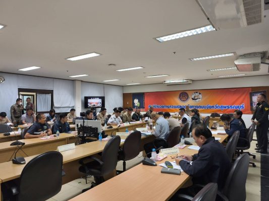 วันนี้(5 ม.ค.69) 08.30 ที่ห้องประชุมพลายแก้ว ศาลากลางจังหวัดสุพรรณบุรี นายณัฐพงษ์ สงวนจิตร ผู้ว่าราชการจังหวัดสุพรรณบุรี เป็นประธานการประชุมศูนย์ปฏิบัติการป้องกันและลดอุบัติเหตุทางถนนช่วงเทศกาลปีใหม่ 2569 จังหวัดสุพรรณบุรี