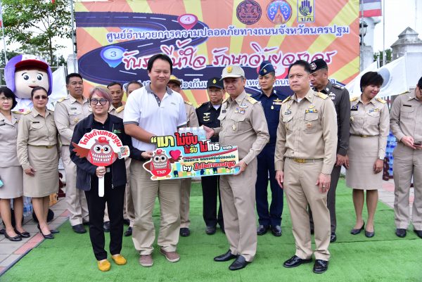 ชมรมจักรยานเพื่อสุขภาพจังหวัดนครปฐม บริษัทโตโยต้า นครปฐม จำกัด การประปาส่วนภูมิภาค สาขานครปฐม และสาขาสามพราน บริษัทดัชมิลล์ จำกัด บริษัท ยูนิเพรสซิเด้นท์ ประเทศไทย จำกัด บริษัทฟู๊ดสตาร์ จำกัด บริษัทเทพผดุงพรมะพร้าว จำกัด บริษัทแฟชั่นฟู๊ด จำกัด บริษัทไทยแอทลาสโกบอล จำกัด โรงงานผลิตภัณฑ์อาหารไทย บริษัท บีทาเก้น จำกัด ศูนย์ประสานงานเครือข่ายเหยื่อเมาแล้วขับ องค์กรงดเหล้าจังหวัดนครปฐม สภาผู้บริโภคจังหวัดนครปฐม และบริษัทอาหารสากล จำกัด โดยได้ร่วมสนับสนุนเครื่องดื่มและอาหารว่างให้แก่ ศูนย์ปฏิบัติการร่วมป้องกันและลดอุบัติเหตุทางถนนจังหวัดนครปฐม เพื่อมอบให้เจ้าหน้าที่ปฏิบัติงานประจำจุดตรวจหลัก จุดตรวจรอง และจุดบริการประชาชนในพื้นที่ต่างๆ ต่อไป
